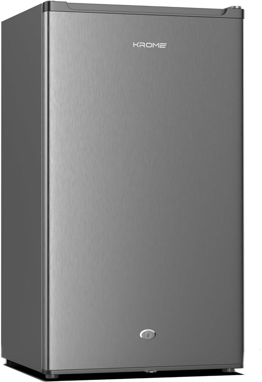 KROME 60L Gross, Single Door Compact Refrigerator, Energy Class A+, Reversible Door, Mini Fridge Suitable for Kitchen, Bedroom Office & Minibar, INOX Color, 5 Year Compressor Warranty- KR-RDC60H