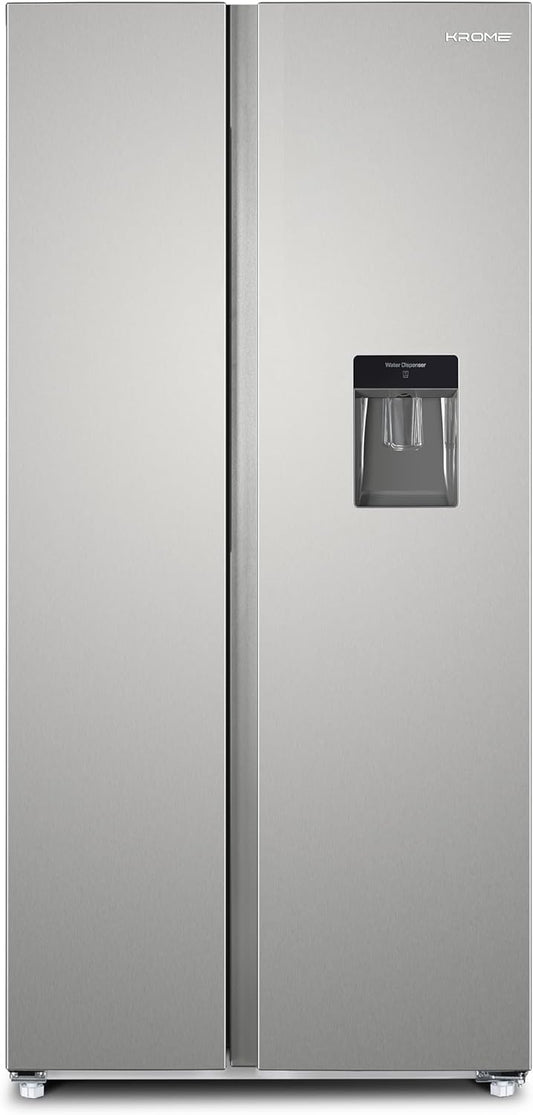 KROME 600L Gross, Side By Side Refrigerator with Multi Air Flow System, Electronic Touch Temperature Control, Door Alarm, No Frost Cooling System, 10 Year Compressor Warranty, Silver- KR-SBS601SM