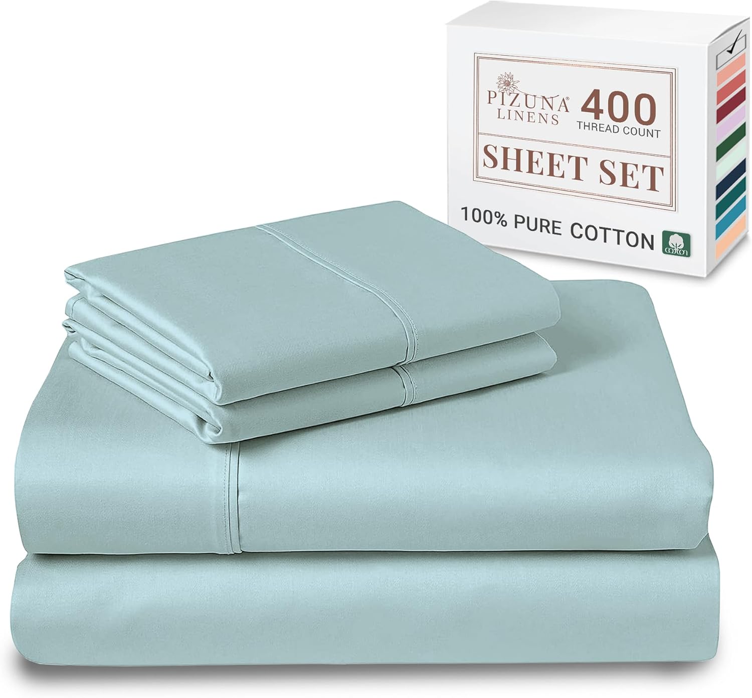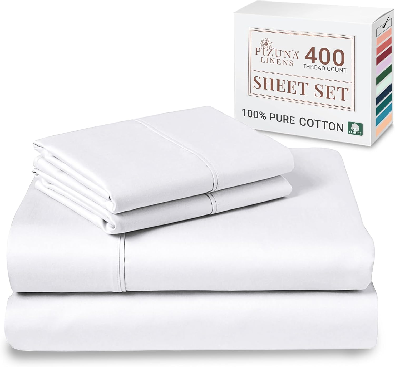 - 100% Pure & Natural Mercerised Combed Cotton: With Pizuna's fine yarn technique, this authentic 400 Thread Count combed cotton sheet set features a single dent (4 up-1 down) sateen weave. Usage of mercerised combed cotton make these full bed sheets set smooth & sturdy. Pure & natural cotton bedding wrinkles, but it is distinctively cooler & breathable. Further, it softens and the wrinkling reduces with every wash.