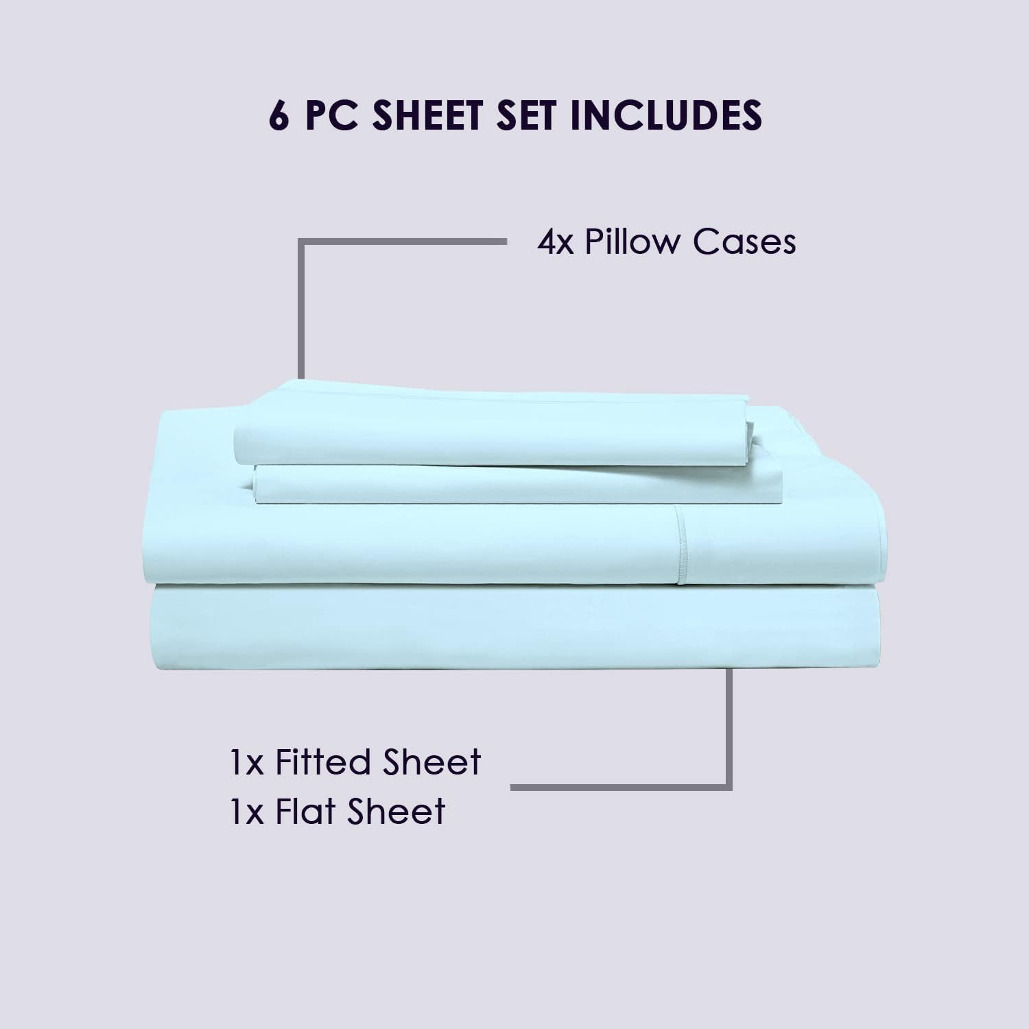 800 Thread Count Baby Blue 6 Piece Queen Sheet Set with 2 Extra Pillow Cases, 100% Long Staple Cotton Smooth Sateen Weave Bed Sheets with Deep Pockets, Value Pack 6 pc Cotton Sheets Queen Baby Blue