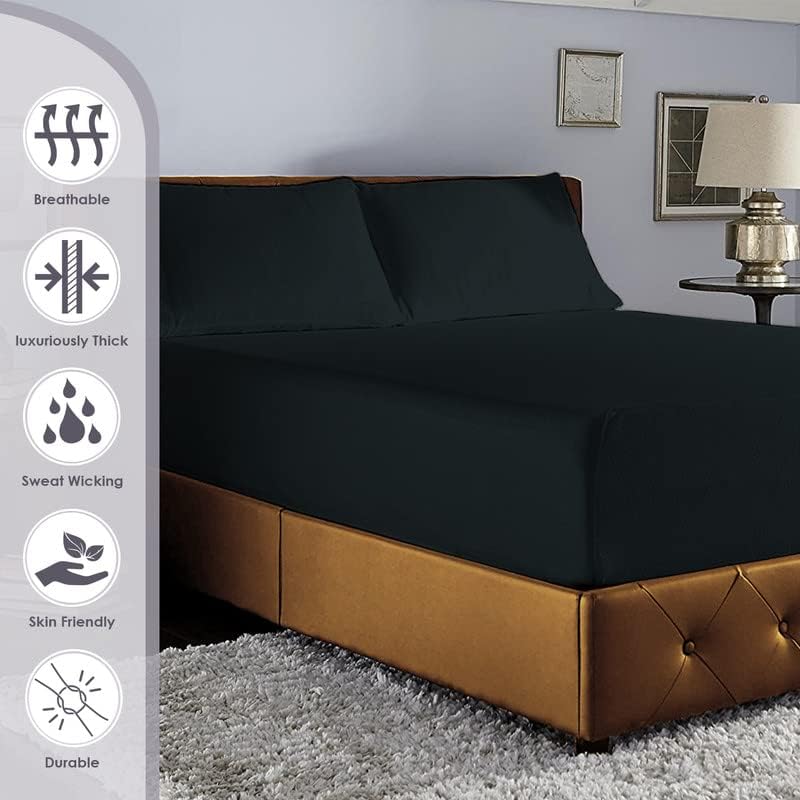 800 Thread Count Cotton King Fitted Sheets Black 1pc, 100% Long Staple Pure Cotton, Smooth Sateen Fitted Sheet Bed fit Upto 15 inch Deep Pockets (Black 100% Cotton Deep Fitted Sheets King)