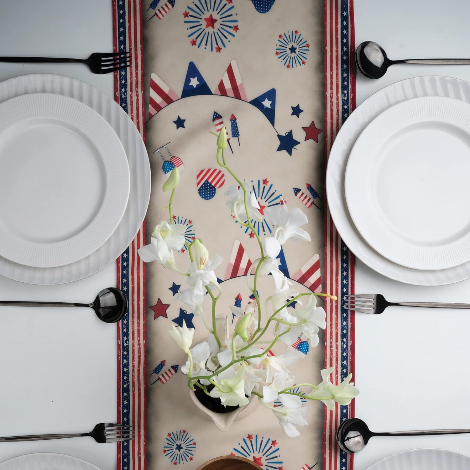 - AVAILABLE IN VARIOUS PRINTS: Elevate your 4th of July tablescapes for Greener nation with beautiful eco-conscious D’Moksha table runners available in various festive prints and patriotic colors of Red, Blue and White.