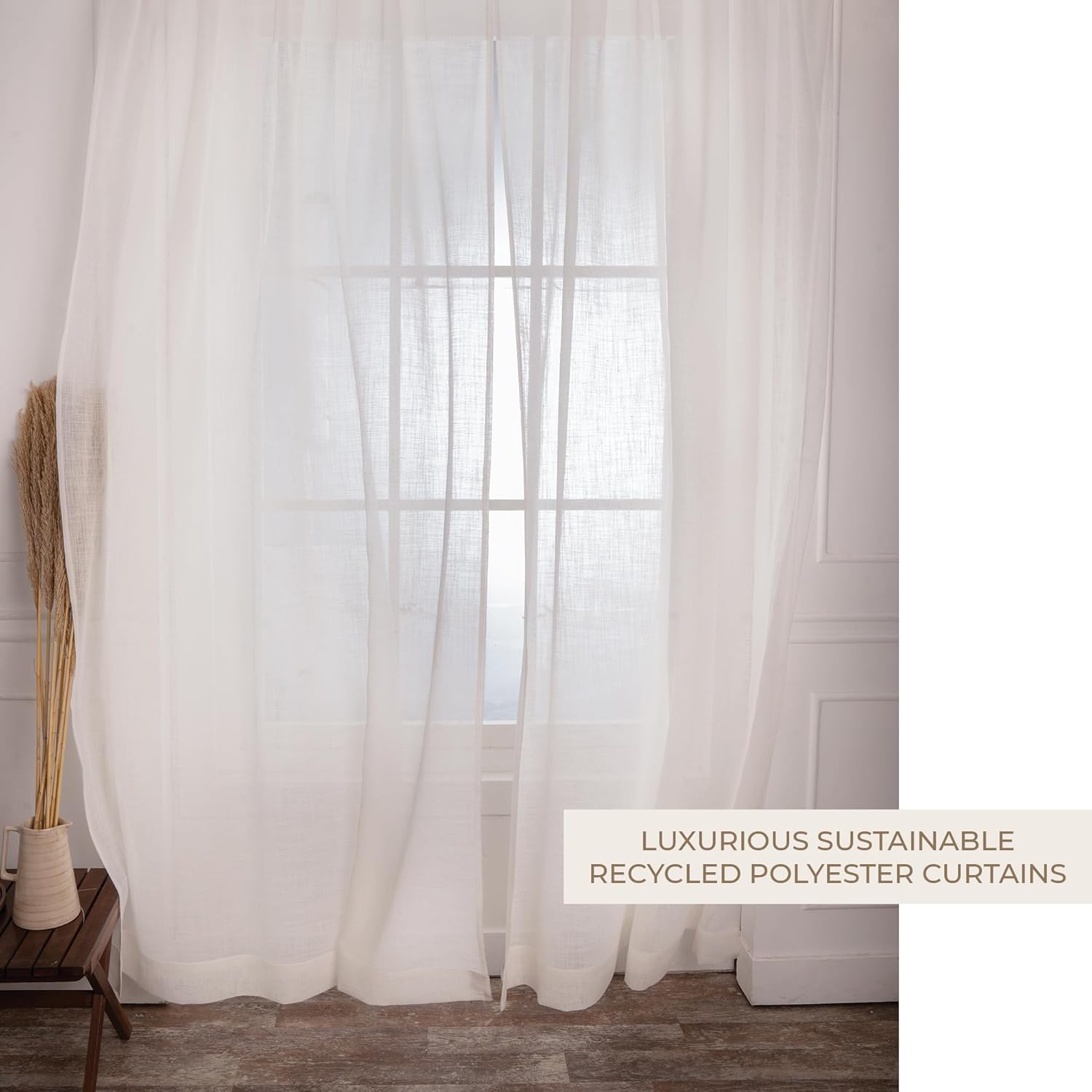- ENVIRONMENTALLY FRIENDLY: Crafted from recycled polyester fibers, these curtains actively contribute to waste reduction and environmental preservation. Embrace a conscious lifestyle without compromising on quality or design by selecting these curtains. The curtain's material is both secure and planet friendly, ensuring peace of mind for families with children and pets as they enjoy its benefits.