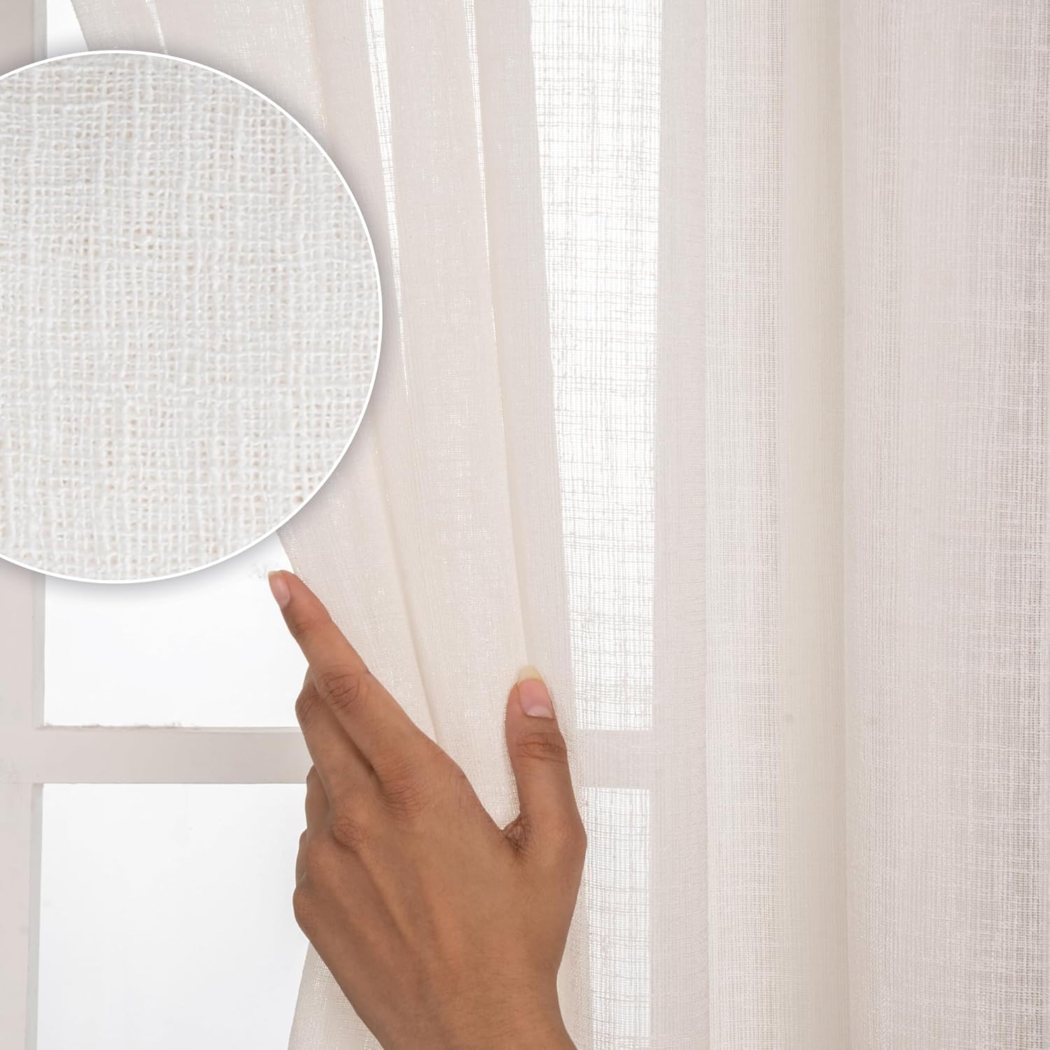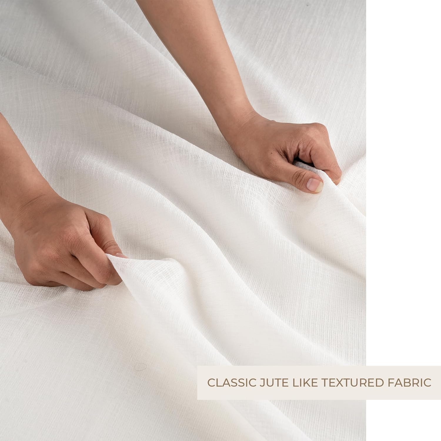 D'Moksha Homes White and Grey Faux Linen Curtains 63 Inches Long - 52 x 63 Inch 2 Panels Light Filtering Rod Pocket Sheer Curtains - Recycled Fabric Faux Jute - Window Treatment for Living Room