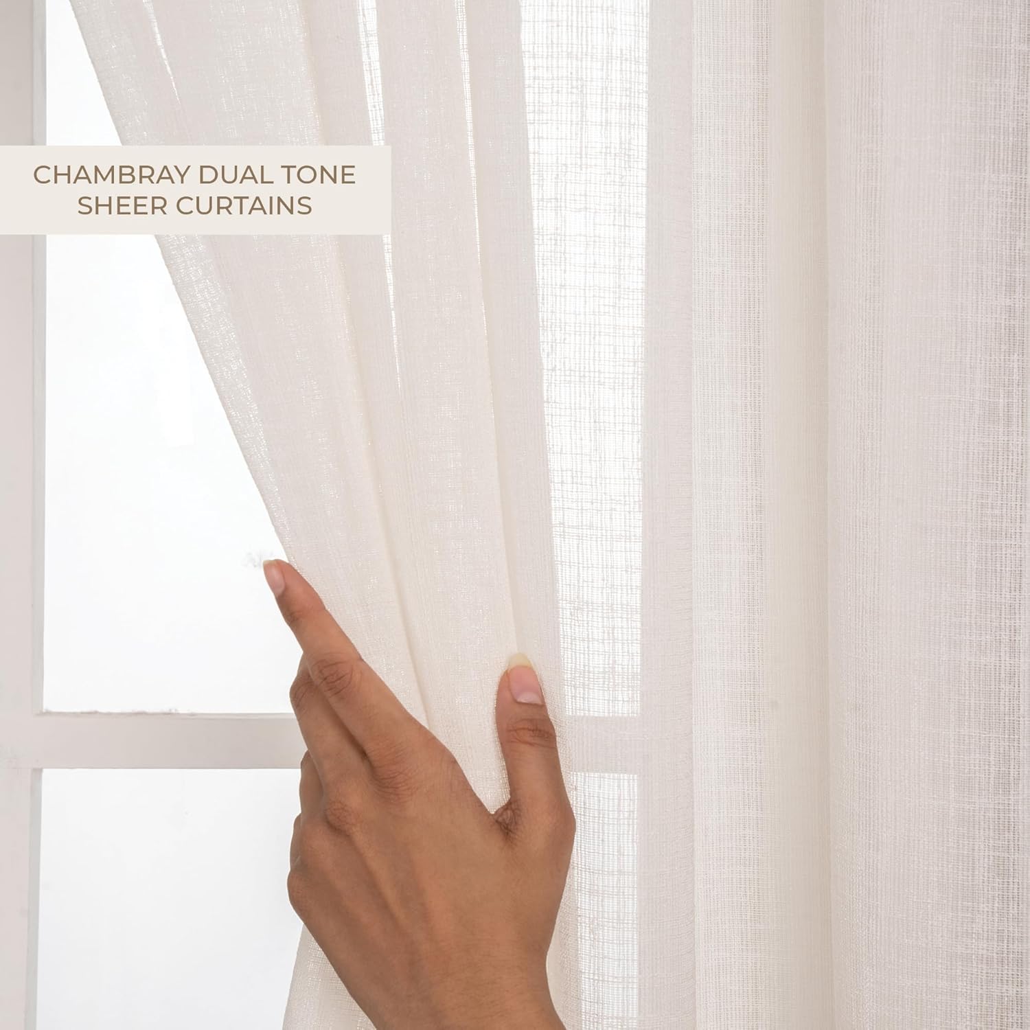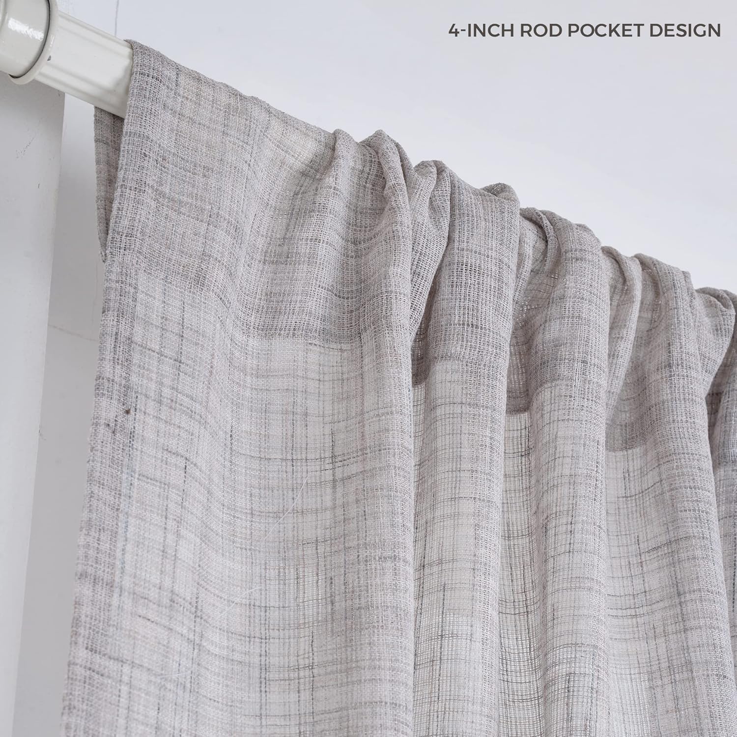 - PACKAGE INCLUDES: Chambray White and Grey linen curtains, each measuring 63 inches in length. This set includes 2 panels, each measuring 52 inches in width. You can effortlessly style these faux linen curtains using the convenient 4-inch rod pocket situated on top.