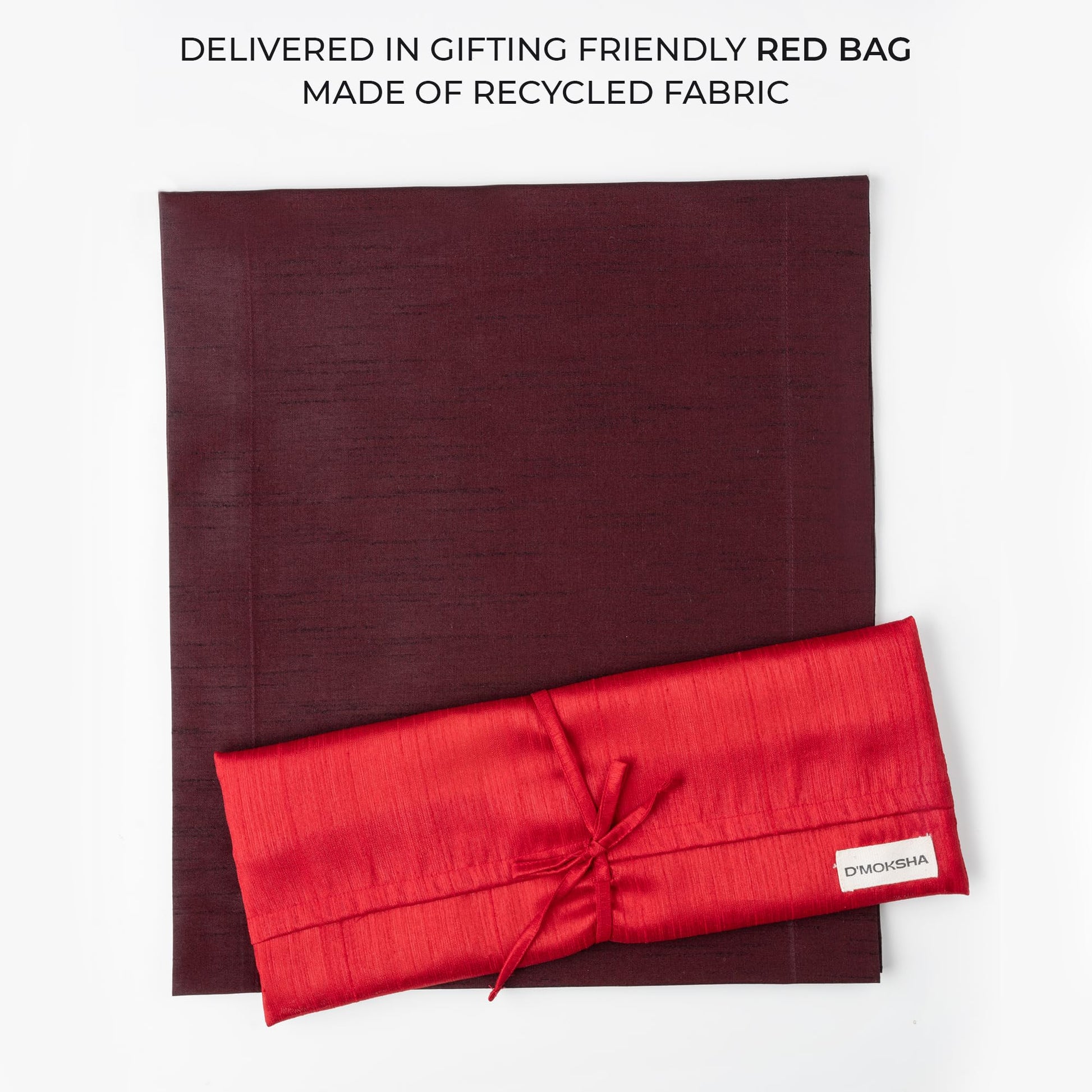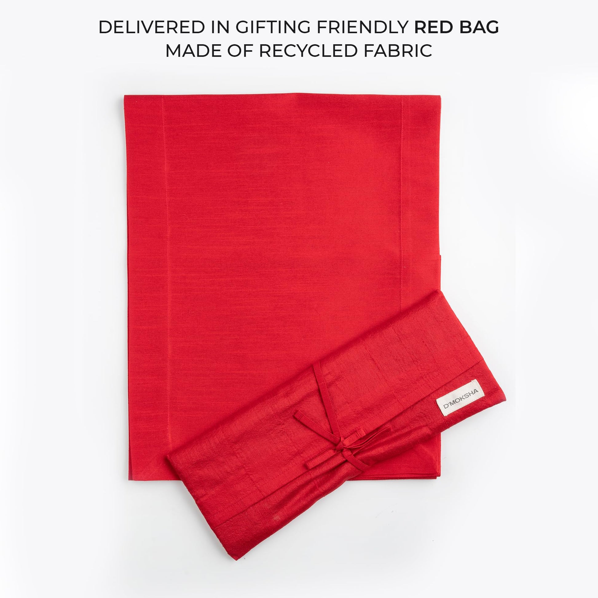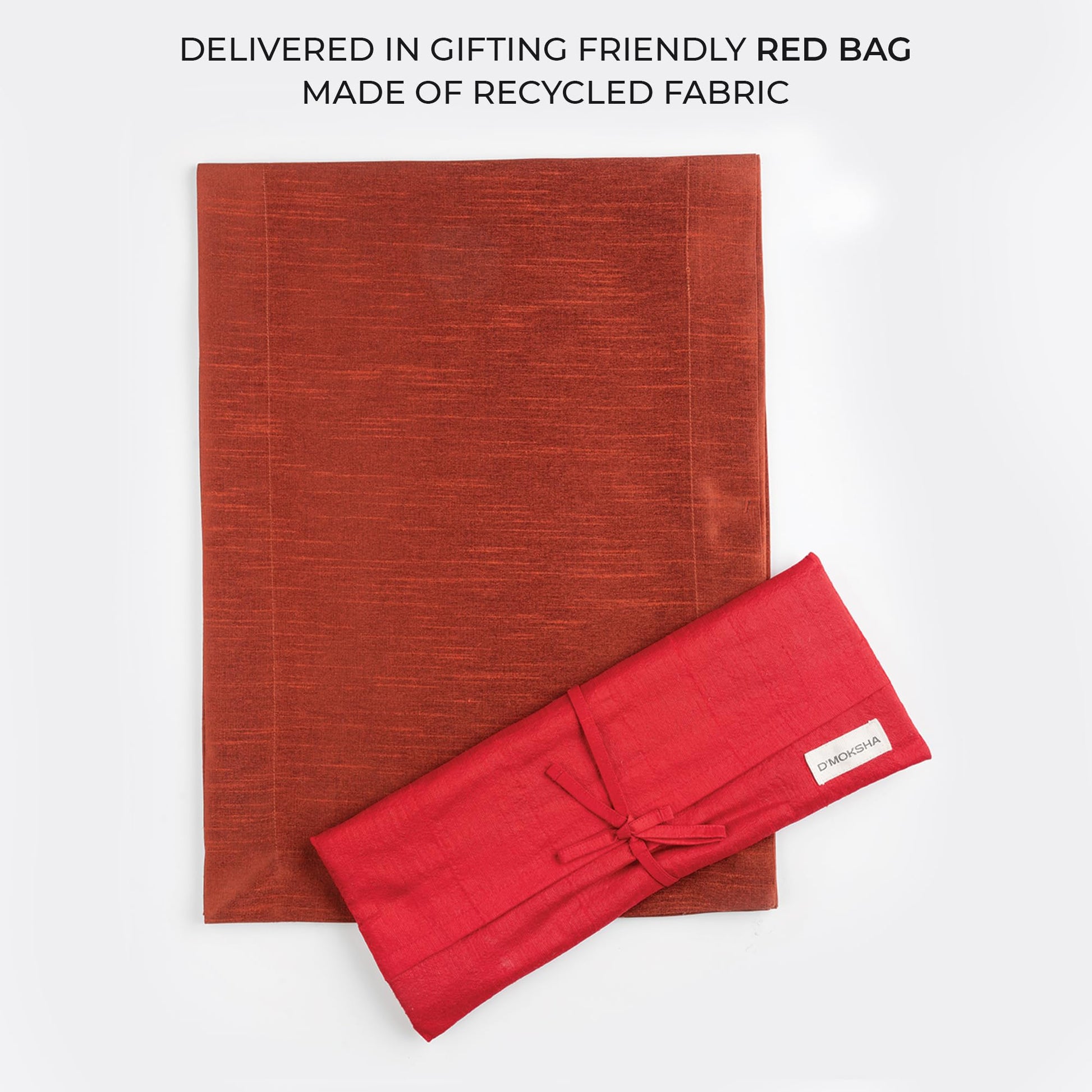- RED GIFT BAG - This wine red table runner comes in a beautiful zero-plastic, red vegan silk bag which is perfect for gifting or reuse, making it a great earth-friendly choice.