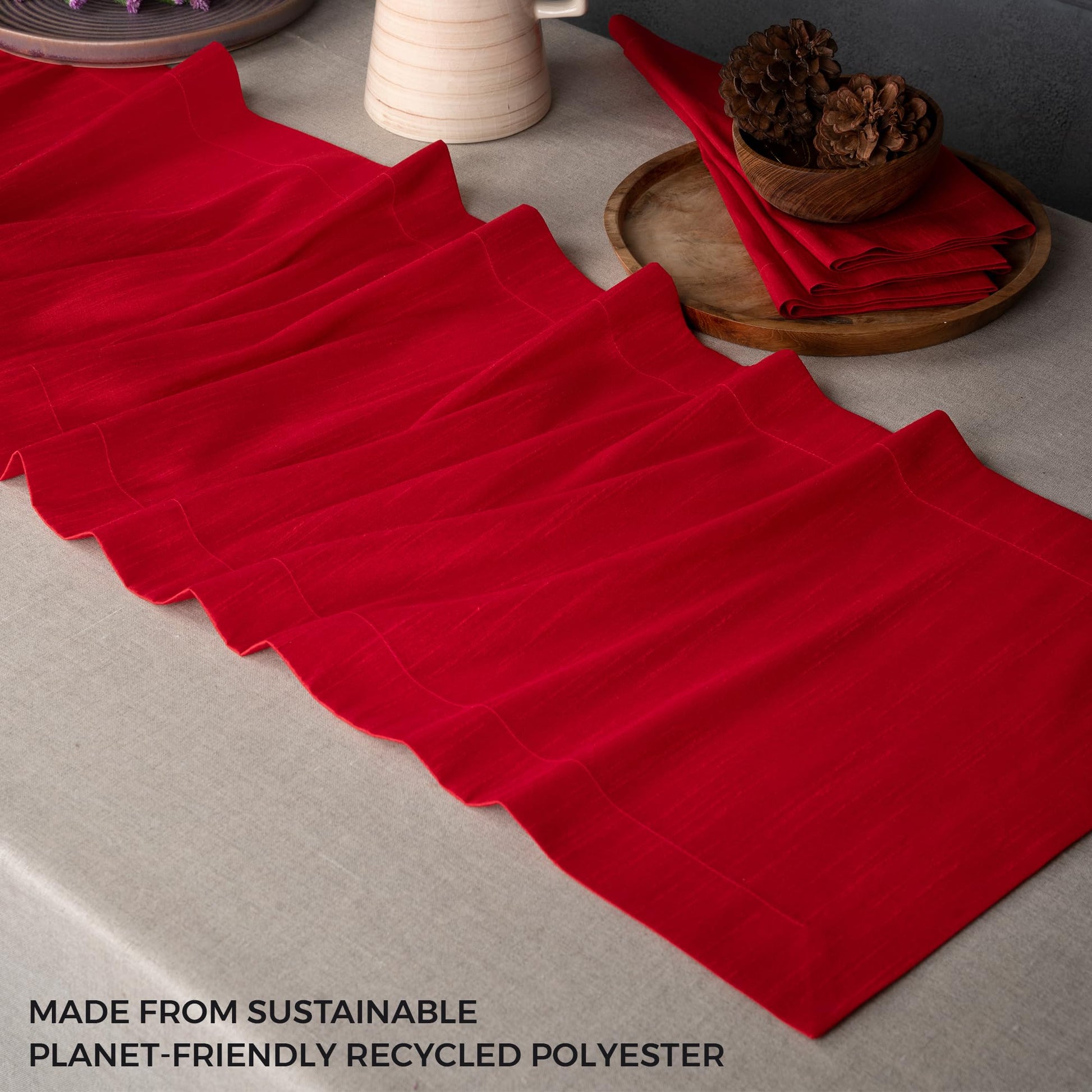 - EARTH FRIENDLY FABRIC - 100% recycled fabric that meets Global Recycled Standards, guaranteeing an ethical and earth-friendly supply chain. Each table runner contains 10 to 35 recycled plastic bottles preventing them from ending up in our oceans or landfills.