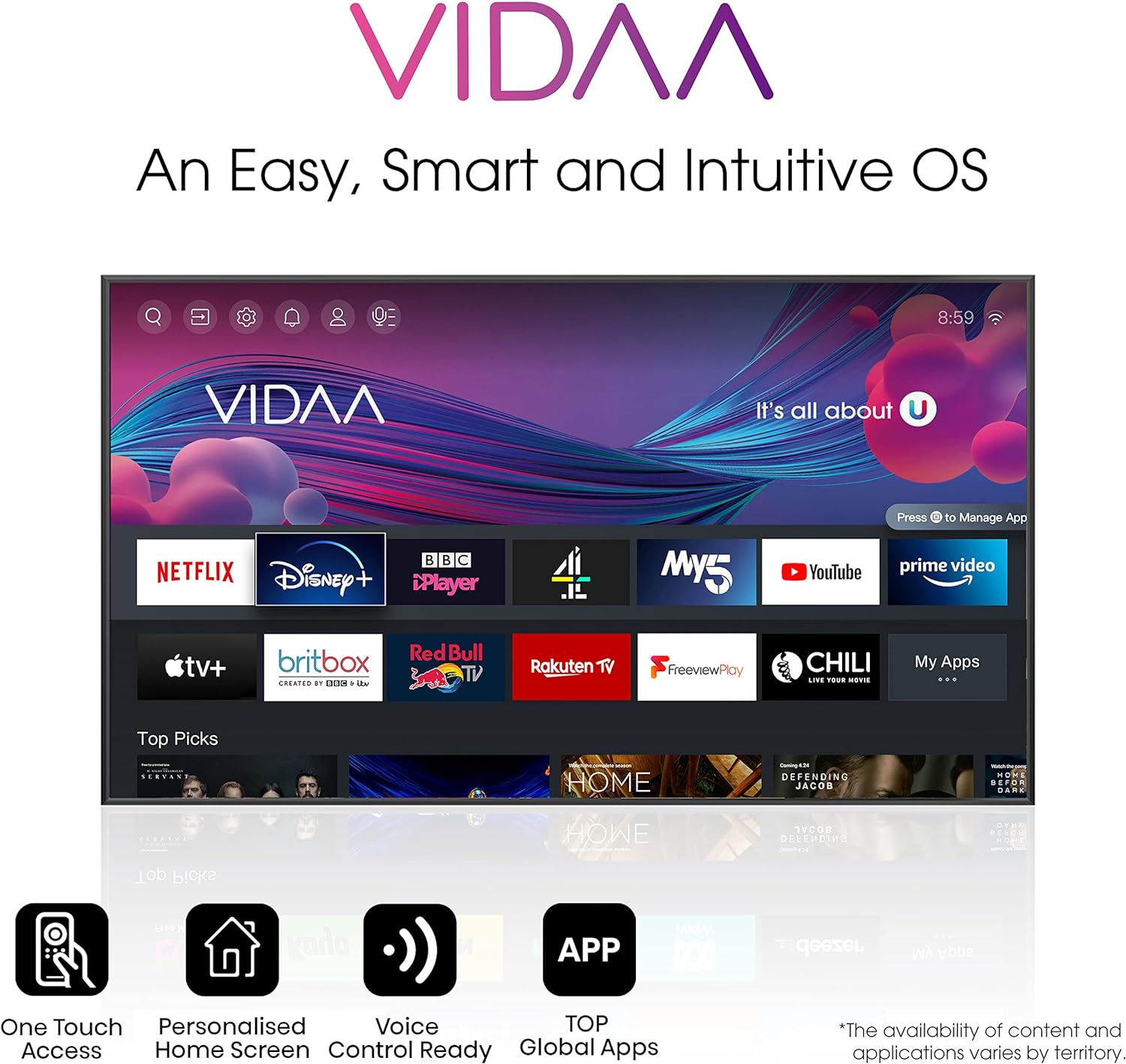 • VIDAA : An easy, smart and intuitive OS, simply access to rich contents and global applications ( YouTube, Netflix and Prime Video etc.), making your TV more interesting..Sports Mode: When a sports signal is detected, it switches to Sports Mode for an immersive live stadium experience, from picture to sound..Game Mode: Game mode boosts your chances of scoring legendary wins by significantly reducing input lag.