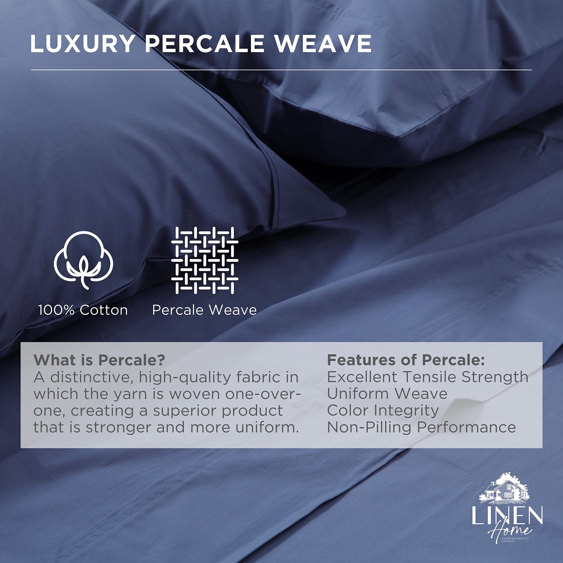 Linen Home 100% Cotton Percale 1 Flat Sheet, Full Size - Crisp, Cool and Strong Bed Linen, Luxury Breathable Sheet, Pastel Turk