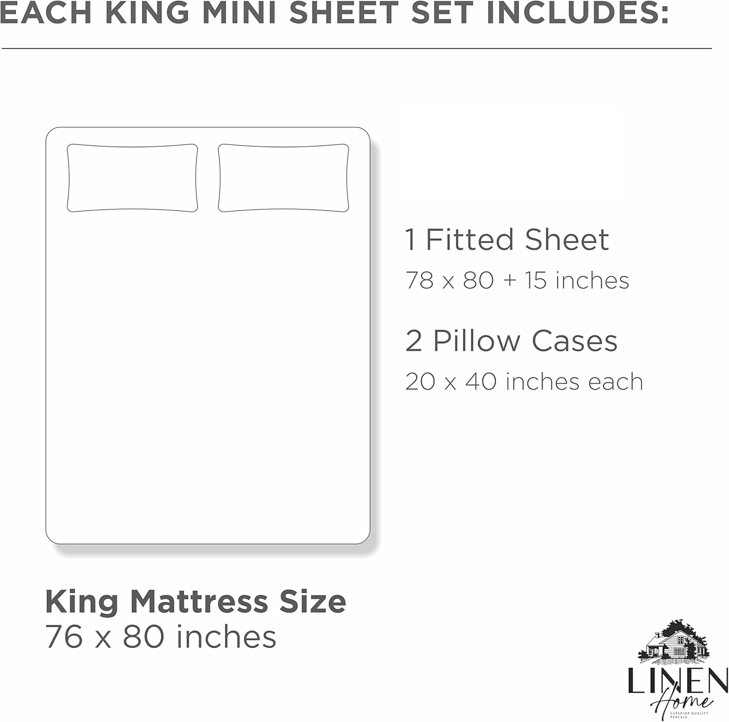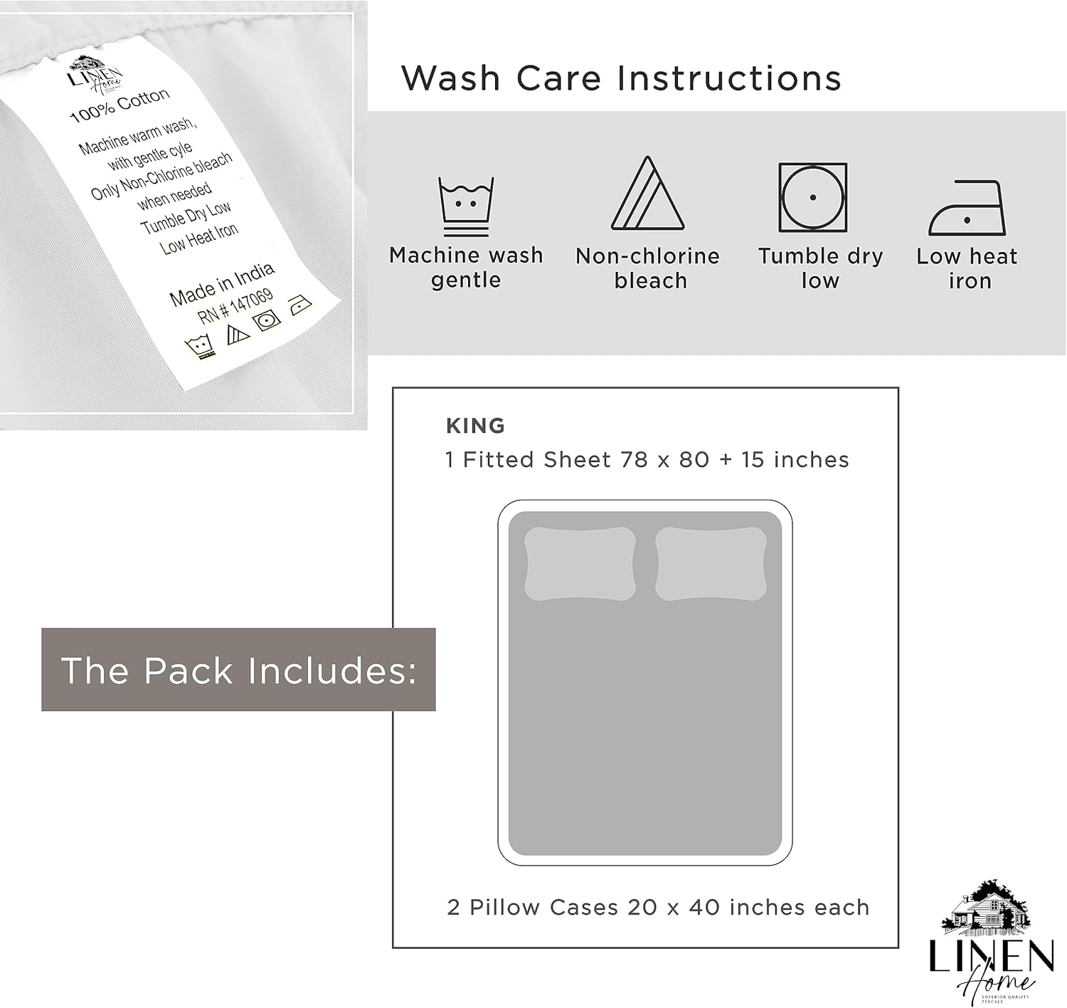 Linen Home 100% Cotton Percale Fitted Sheet Set King Size, Ivory, Deep Pocket, 3 Piece - 1 Deep Pocket Fitted Sheet and 2 Pillowcases, Crisp Cool and Strong Bed Linen