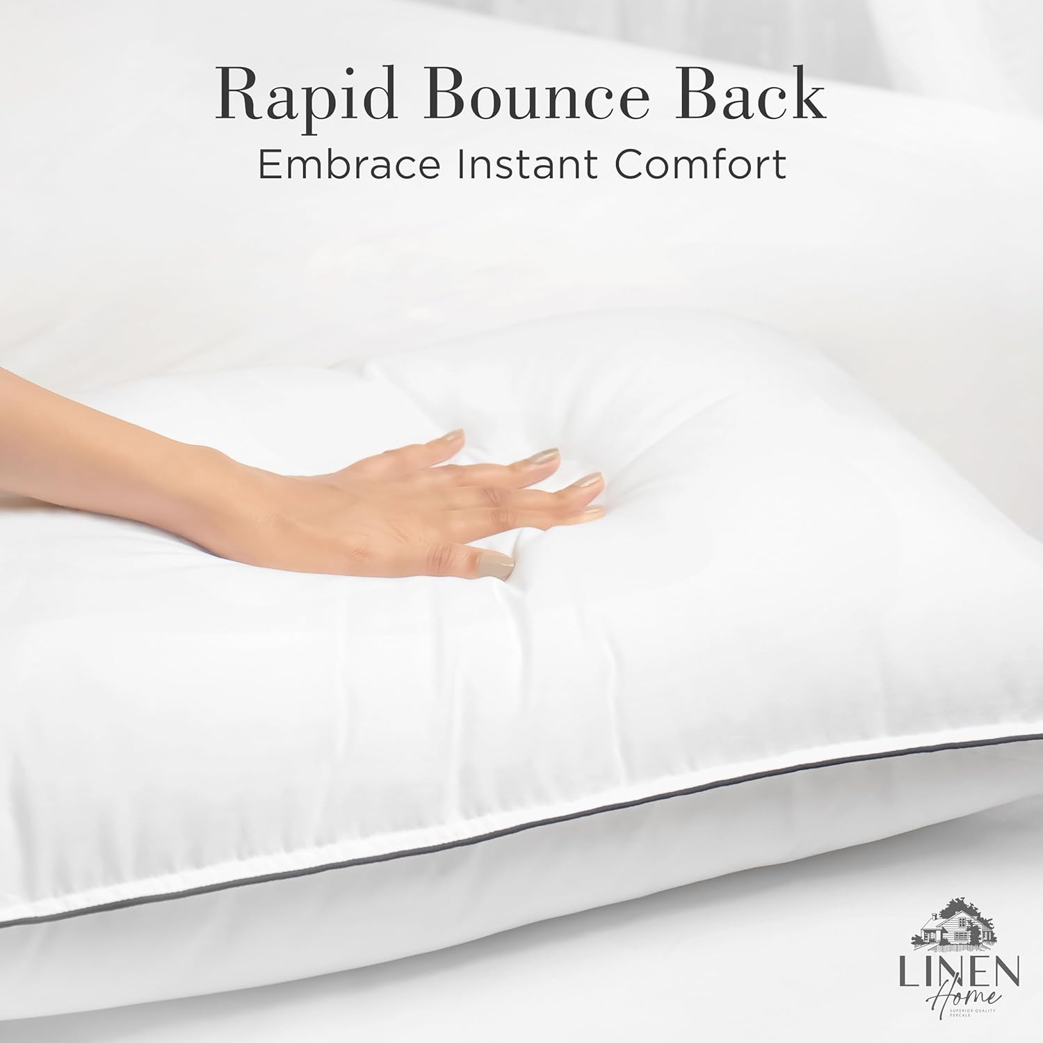 - Rapid Bounce Back: Elevate your sleep with our down alternative pillow inserts. These plush, cooling pillows are crafted to maintain their plushness and shape that offer consistent cloud-like comfort night after night. Say goodbye to flat or lumpy pillows – experience the luxury of lasting support.