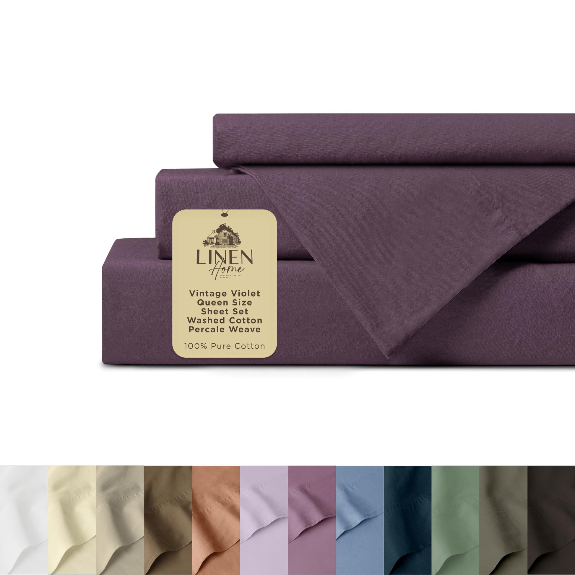 - Vintage Washed "Ready-to-Use" Sheet Set: Upgrade your sleep with our meticulously crafted 100% cotton sheets with a percale weave for coolness and breathability. These sheets have undergone a preshrinking process, that helps in maintaining perfect fit and shape after multiple washes. The vintage washed finish adds a touch of rustic charm and enhances the softness of these sheets. Enjoy the luxury of premium cotton bed sheets that cater to your comfort night after night.