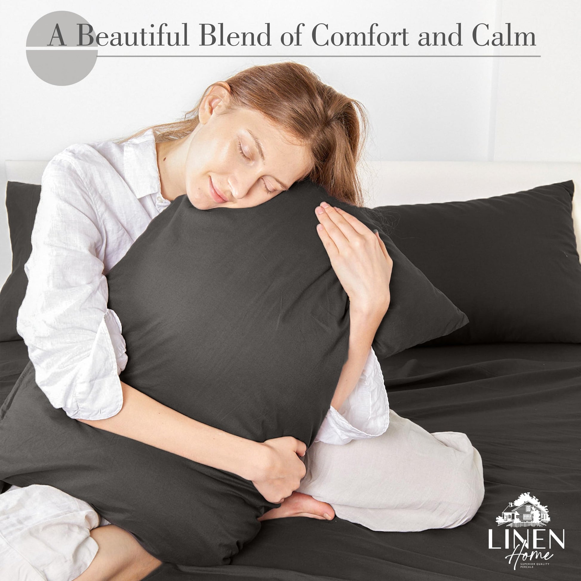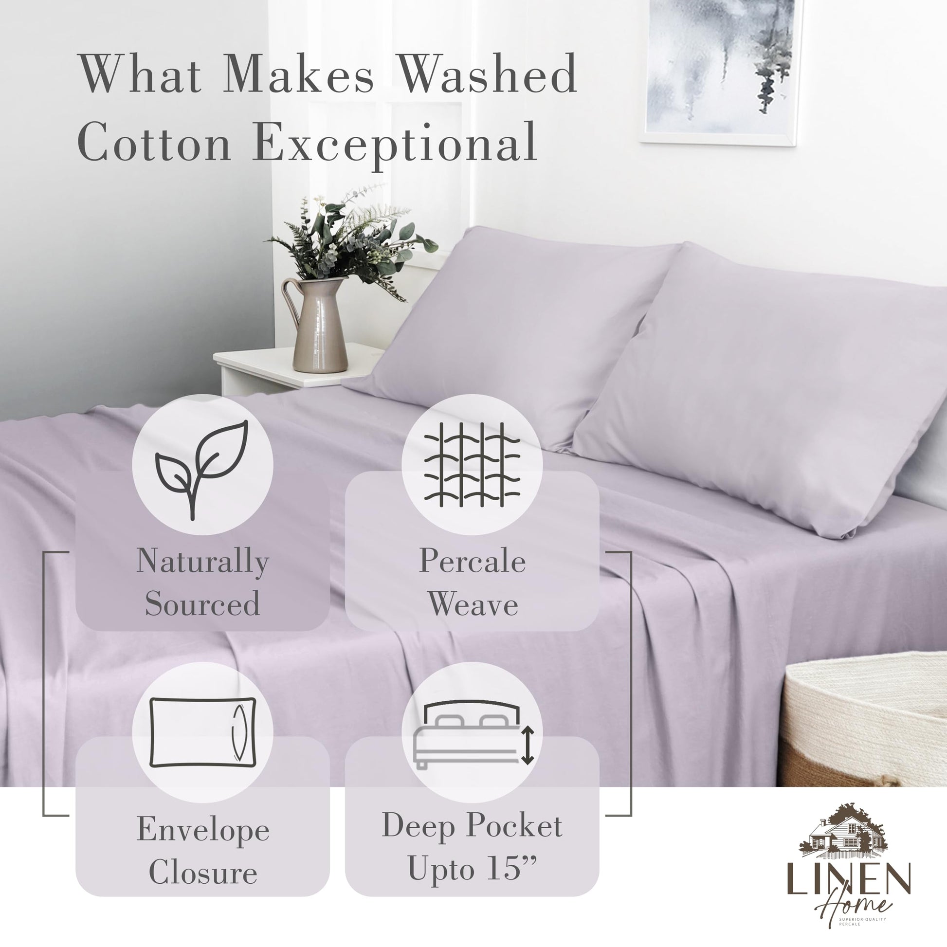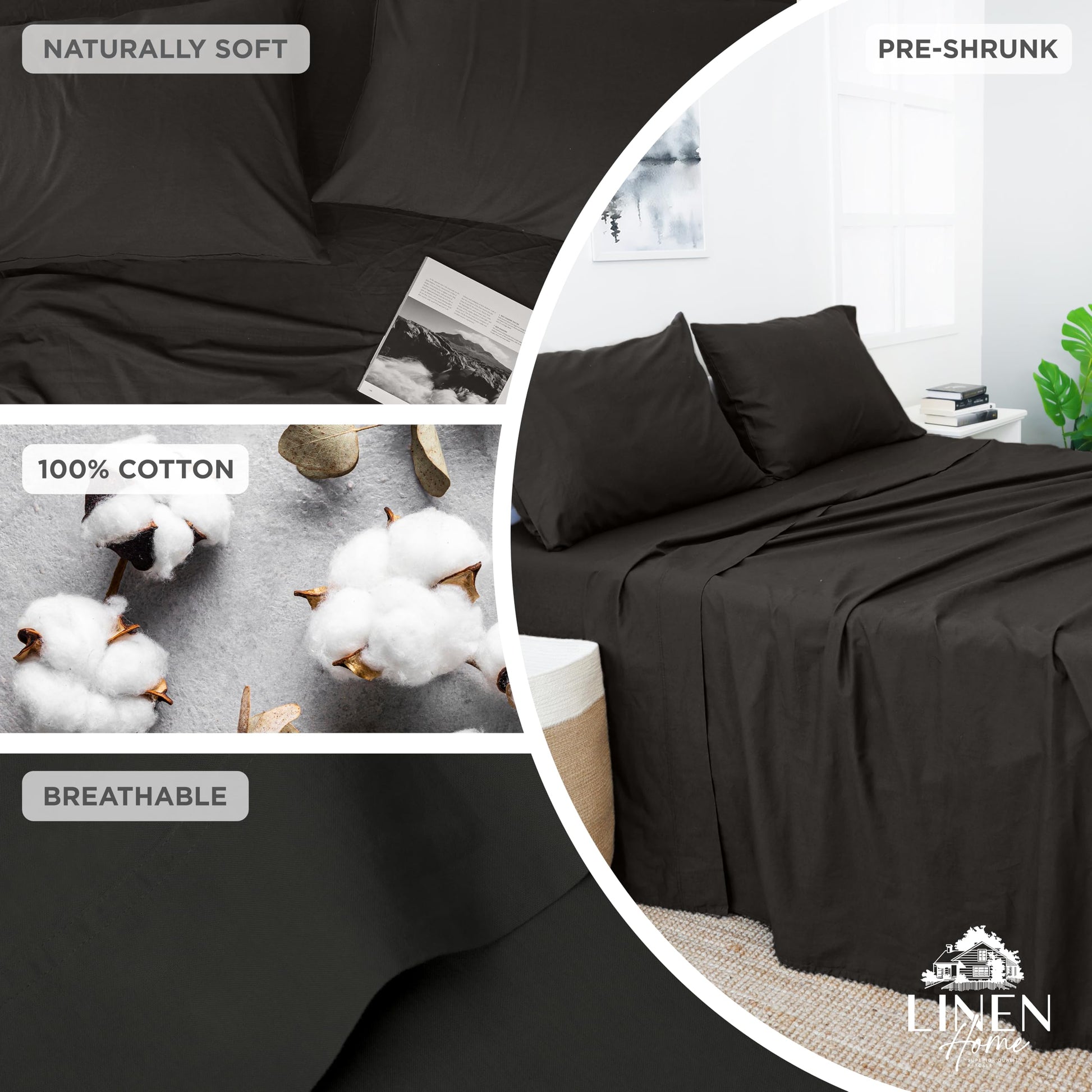 Linen Home Washed Cotton Percale Twin Sheet Set, Charcoal, Preshrunk, 3 Pieces Sets - 1 Flat, 1 Deep Pocket Fitted Sheet & 1 Envelope Closure Pillowcase, Soft, Cool and Comfortable Bed Linen