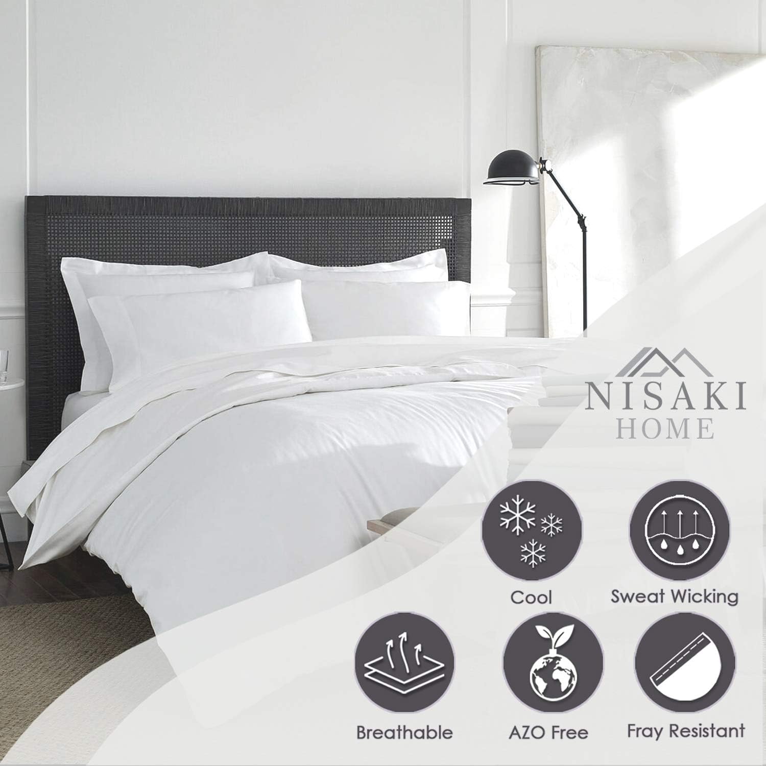 Nisaki 200 Thread Count Cotton Sheets Set, 100% Long Staple Cotton White King Sheets, Luxurious Sateen Weave Cotton Bed Sheets Deep Pocket fit Upto 15 inch Queen-Full Duvet Cover Set White