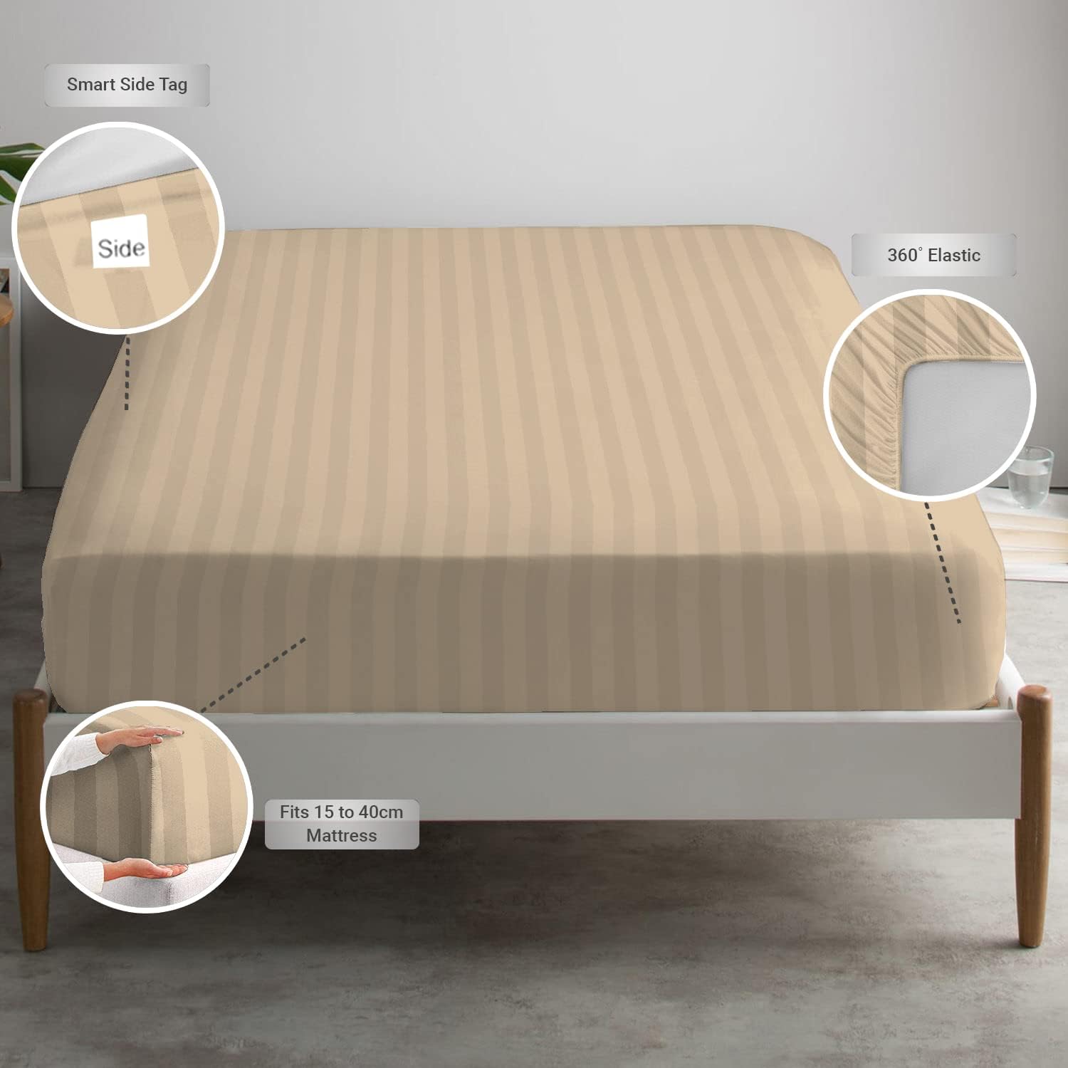 - STYLISH CRAFTSMANSHIP: The deep pocket sheets in Queen is crafted to give your bedroom décor a trendy look. The stripe design is timeless and contemporary which you can effortlessly mix and match with other bedding accessories. Enjoy a goodnights sleep with the breathable and soft extra deep fitted sheets that let’s your skin breathe naturally. Our stripe fitted sheet is an ultimate gifting option for all occasions including Valentine’s Day, Christmas Day, Mother’s Day & Father’s Day gift.