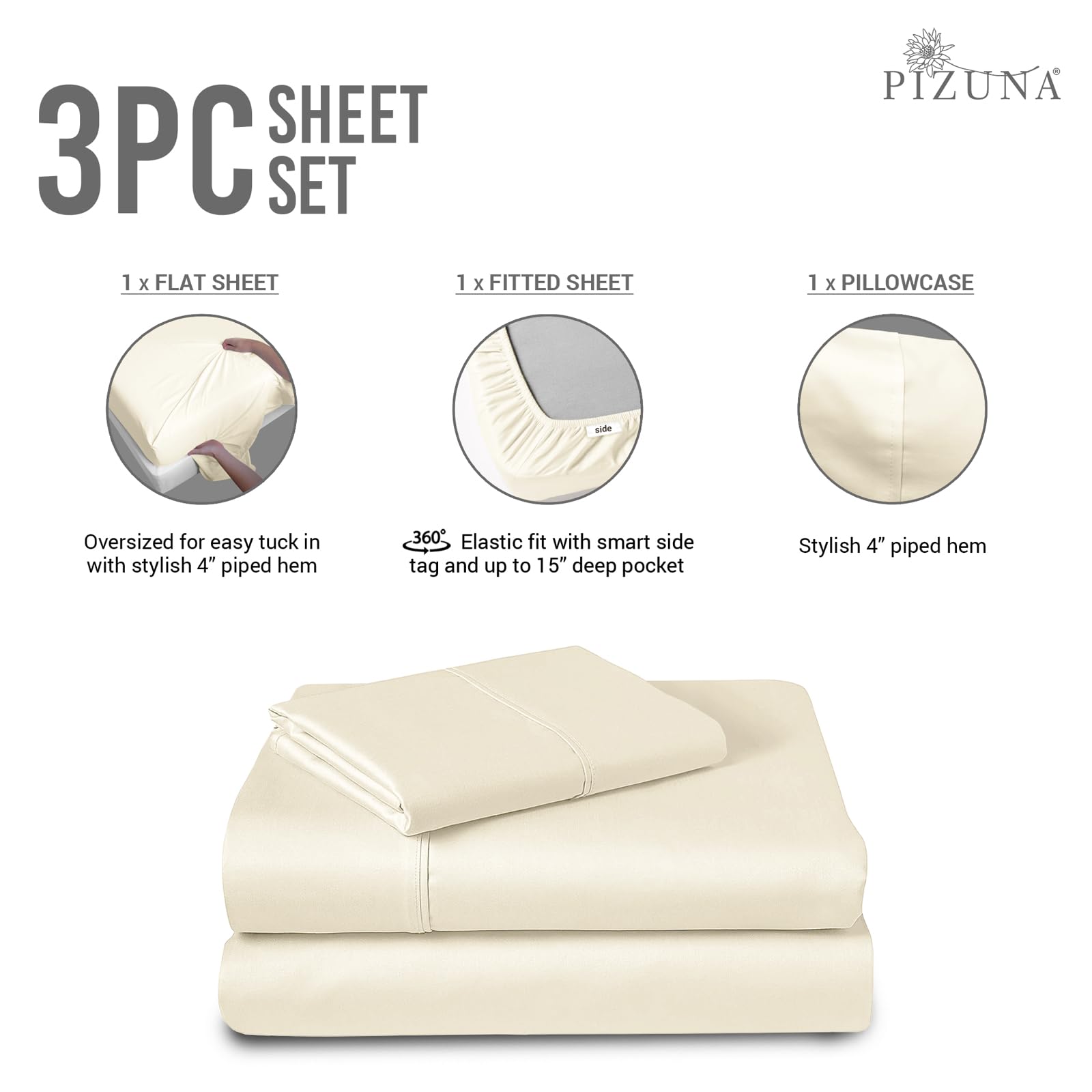 - 100% Pure & Natural Mercerised Combed Cotton: With Pizuna's fine yarn technique, this authentic 600 Thread Count combed cotton sheet set features a single dent (4 up-1 down) sateen weave. Usage of mercerised combed cotton make these twin bed sheets set smooth & strong. Pure & natural cotton bedding wrinkles, but it is distinctively cooler & breathable. Further, it softens and the wrinkling reduces with every wash.