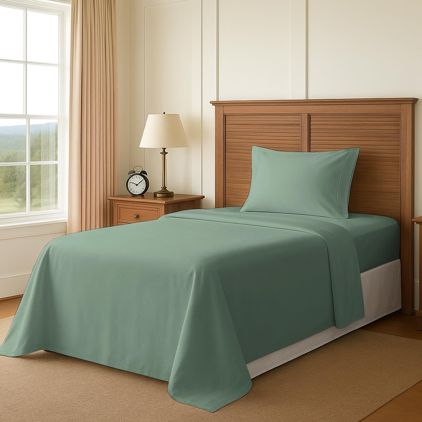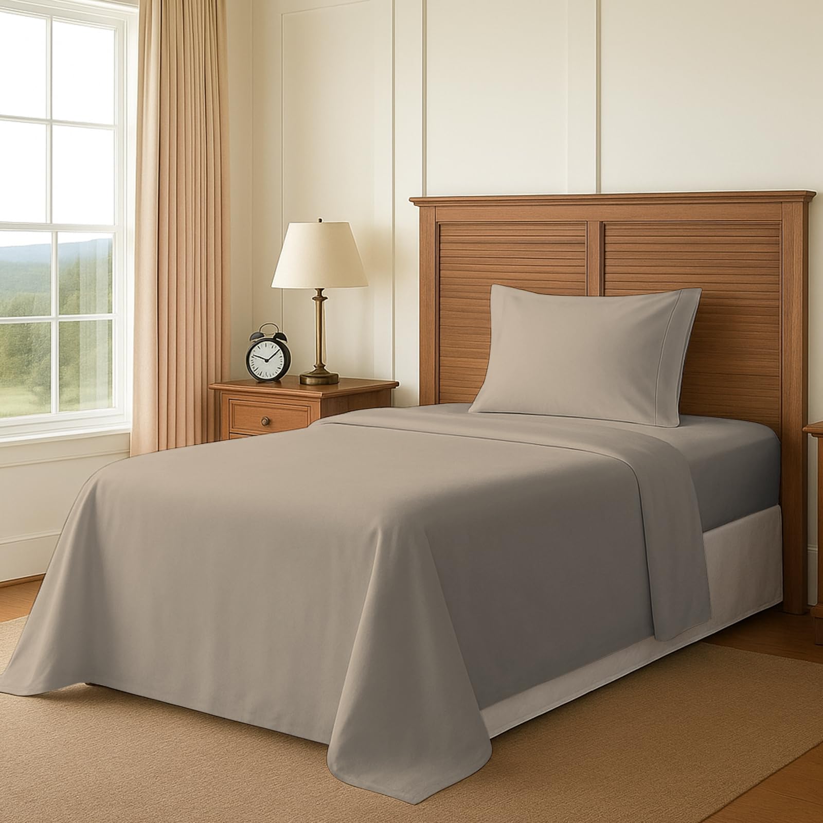 - Patented Stitching for Great Fit: Twin Sheet Set includes: 1 Twin Size Flat Sheet (66” x 100”) - Quickly absorbs sweat & protect stains, ensuring comforter or duvet freshness. 1 Fully Elasticized Fitted Sheet with deep pocket (39” x 75” + 15”) - Comes with a unique patented stitching that has thick & high-quality elastic for a firm fit on 8” to 15” thick mattresses. 1 Queen Pillowcases (20” x 30”) - Inbuilt Pizuna-styled 4" piped hem that gives an elegant look and a comfortable sleep.