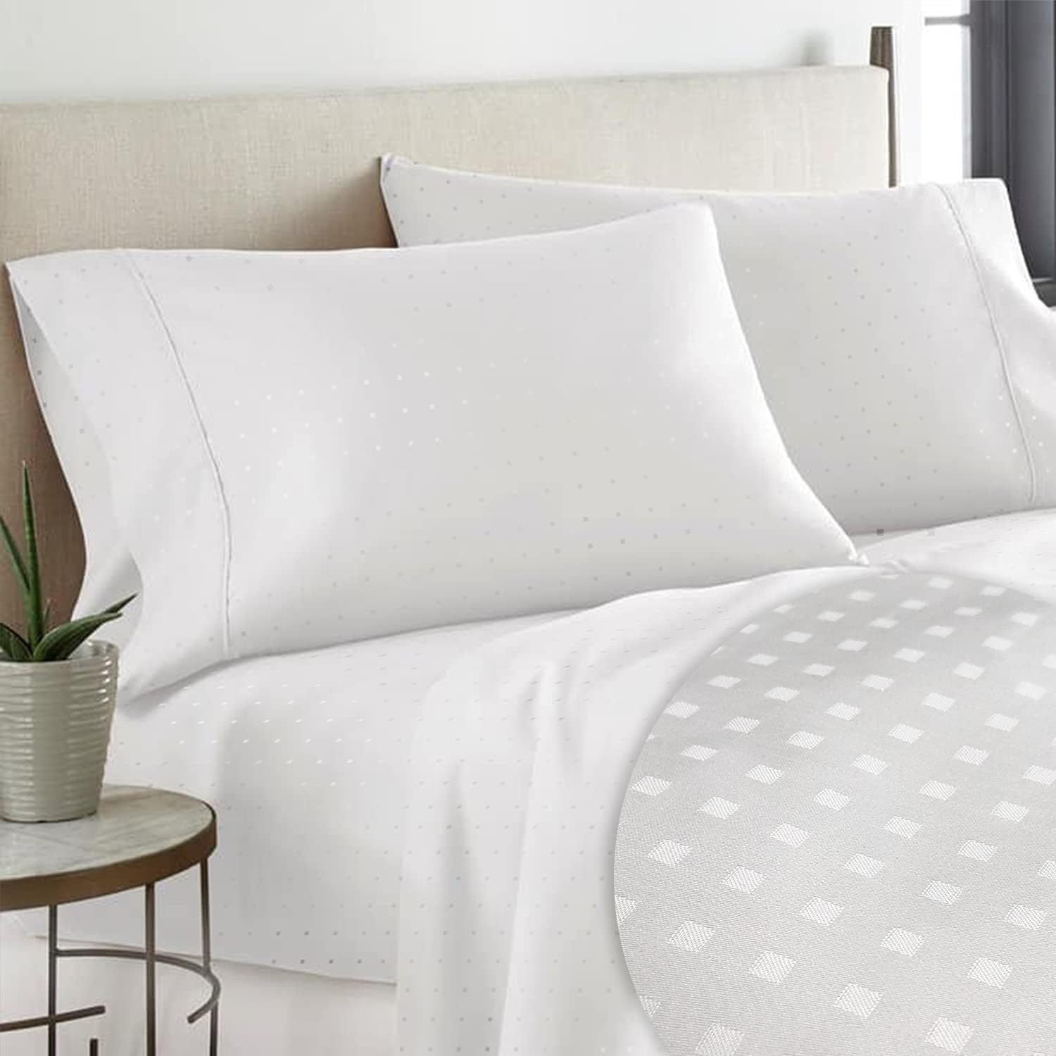 Pizuna 600 Thread Count Jacquard Square Dots Cotton White Pillow Cases King 2pc, 100% Long Staple Cotton Smooth Breathable Cooling Pillow Cases Soft Sateen Weave (Cotton White Pillow Covers)