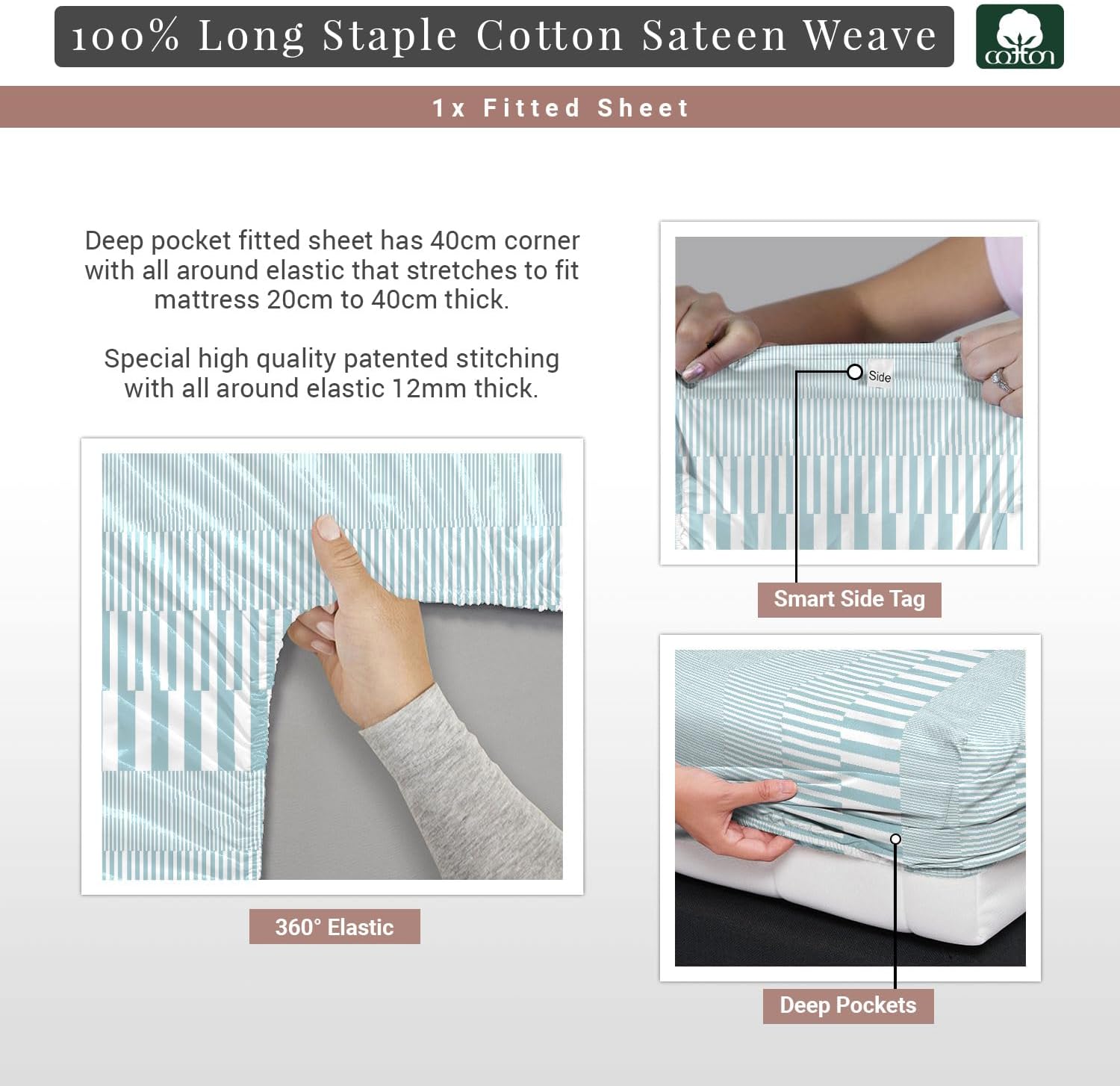 Pizuna Cotton Blue Cascade Stripe Full Size Fitted Sheet 1 Pc 400 Thread Count 100% Long Staple Cotton Full Size Fitted Sheet Only of 15 Inch Deep Pocket (Printed Cotton Full Size Sheets 1 Pc)