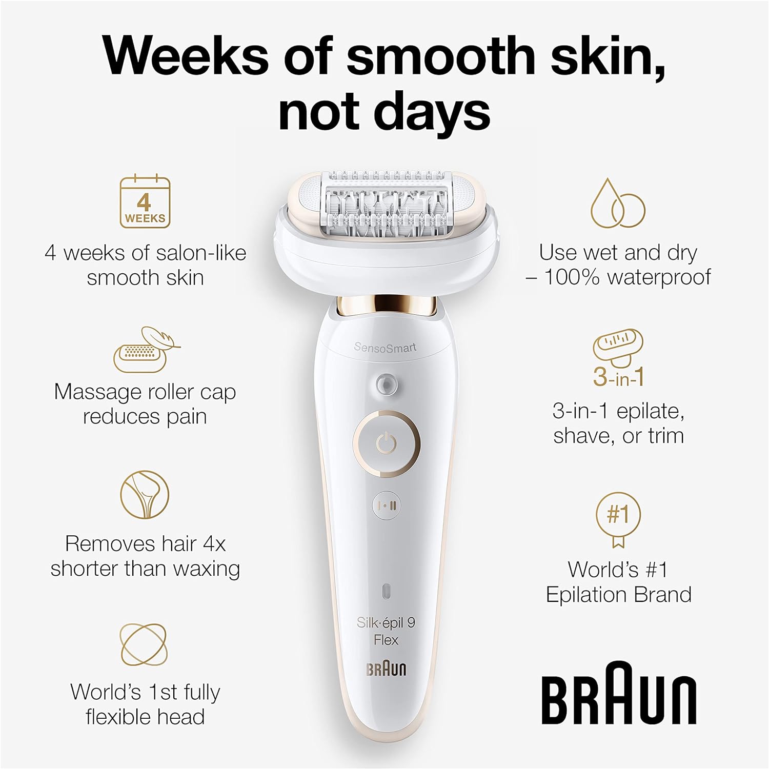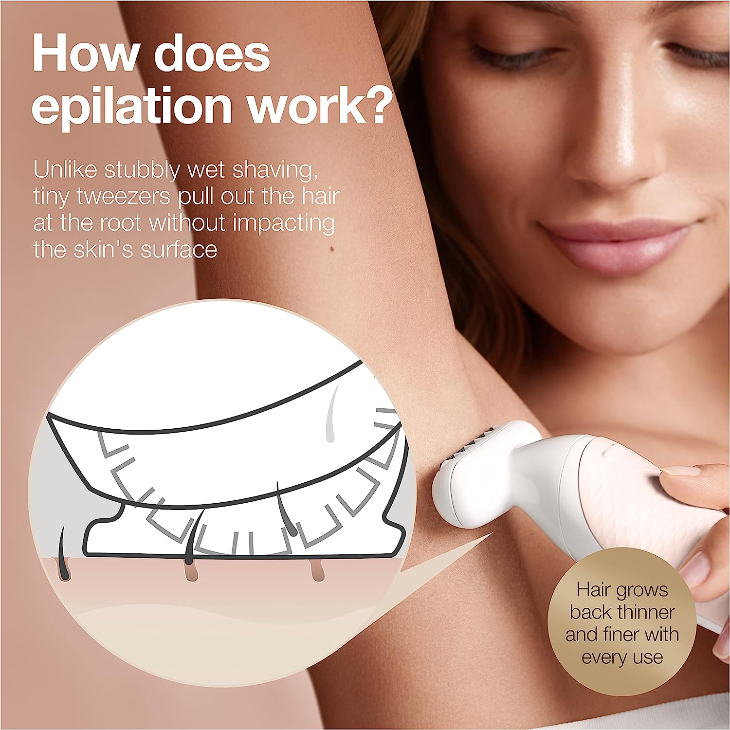 - CONVENIENT: as easy as shaving, as long-lasting as wax for salon-like smooth skin at-home. Cordless and rechargeable.100% WATERPROOF: you can use in the shower or bath, with anti-slip grip for control even when wet. Epilation becomes virtually painless with frequent use in water.SAVE MONEY: Never make a hair removal appointment an. Switch to Silk·épil from waxing at the salon and save over $700 a year.MULTIFUNCTIONAL: shave, trim, exfoliate, and epilate with interchangeable heads.