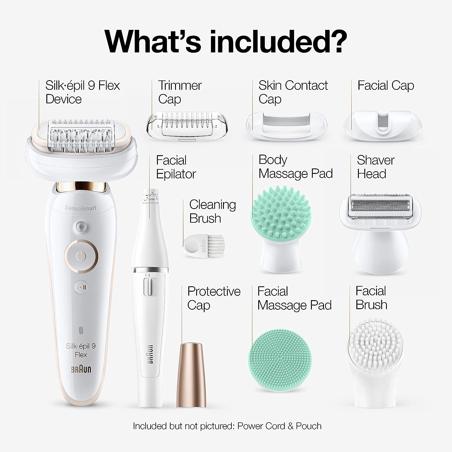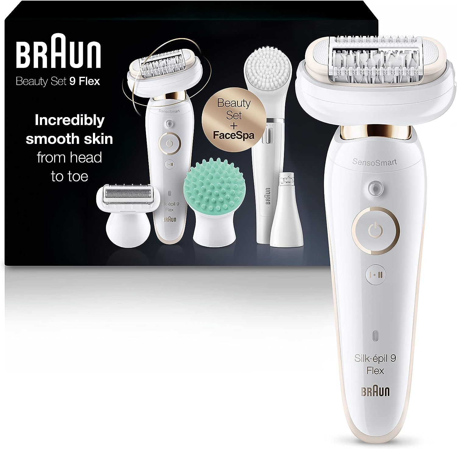 Braun Epilator Silk-épil 9 Flex 9-300 Beauty Set, Facial Hair Removal for Women, Shaver & Trimmer, Cordless, Rechargeable, Wet & Dry, FaceSpa