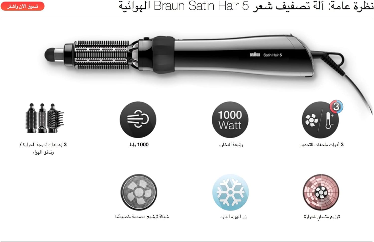 Braun Satin Hair 5 AS530 Airstyler With 3 Attachments, Steam Function - 1000 watt