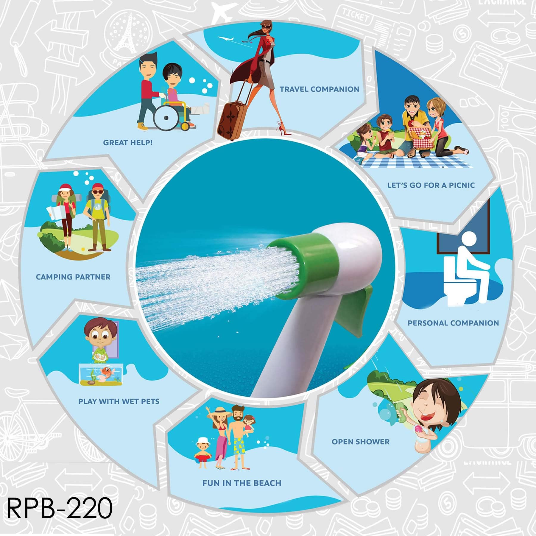 Crownline rpb-220 portable outdoor camping shower. Bidet handheld water sprayer. 2200mah rechargeable battery. Water pump for travelling. Camping, hiking, outdoor and travelling.