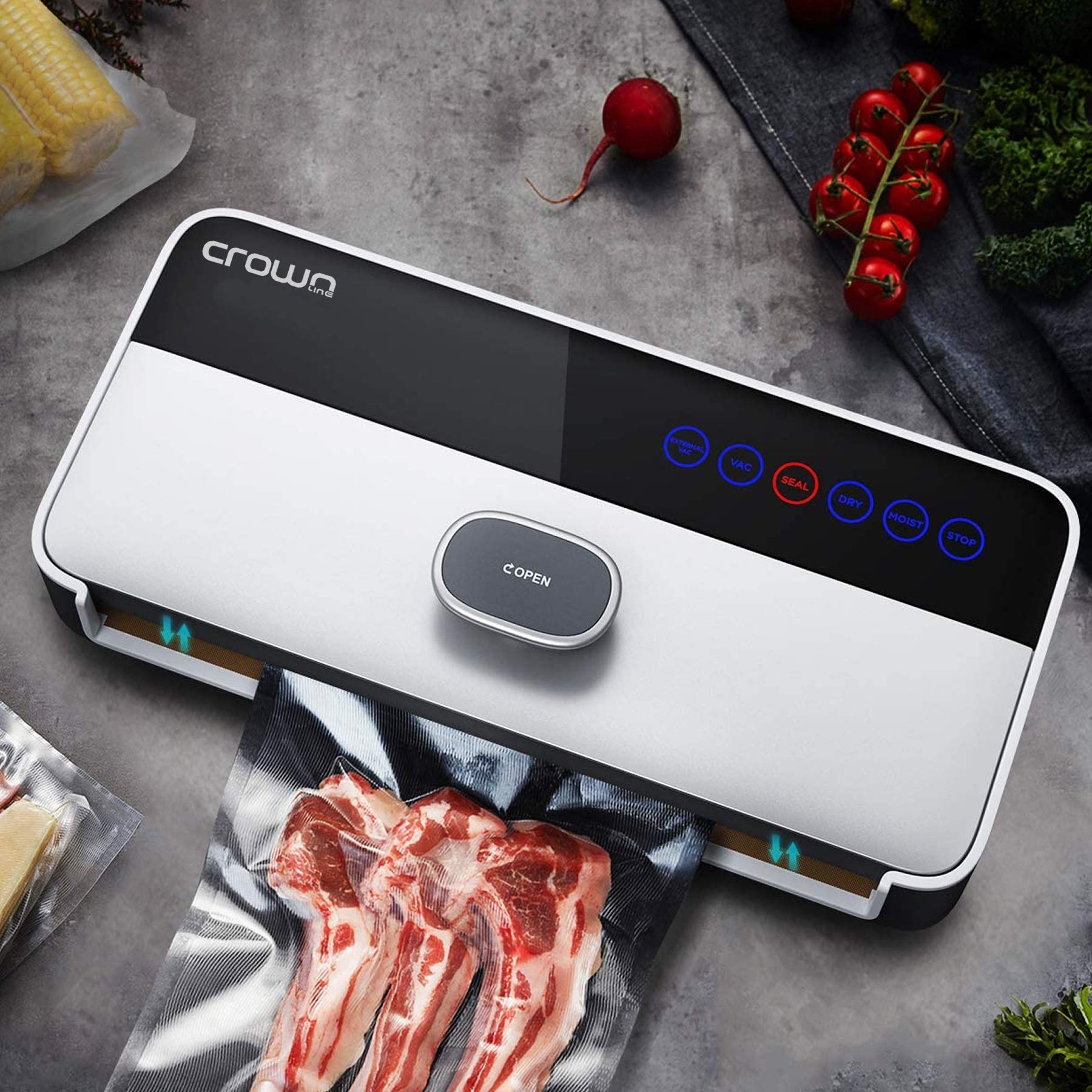 Crownline Vs-246 Vacuum Sealer 220-240V-, 50/60Hz, 120W,Class Ii, Automatic Vacuum Sealer, Vac Packing And Food Sealing For Dry And Moist Food Preservation, Vacuum Roll Bags & Hose Included.