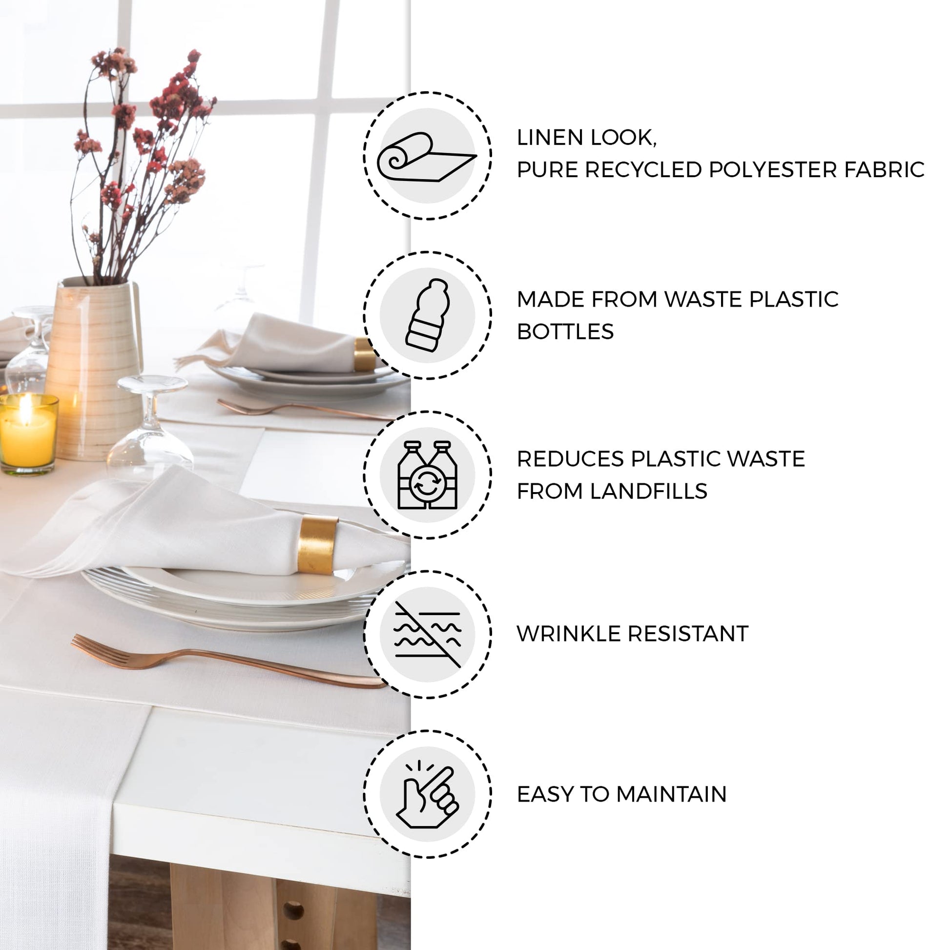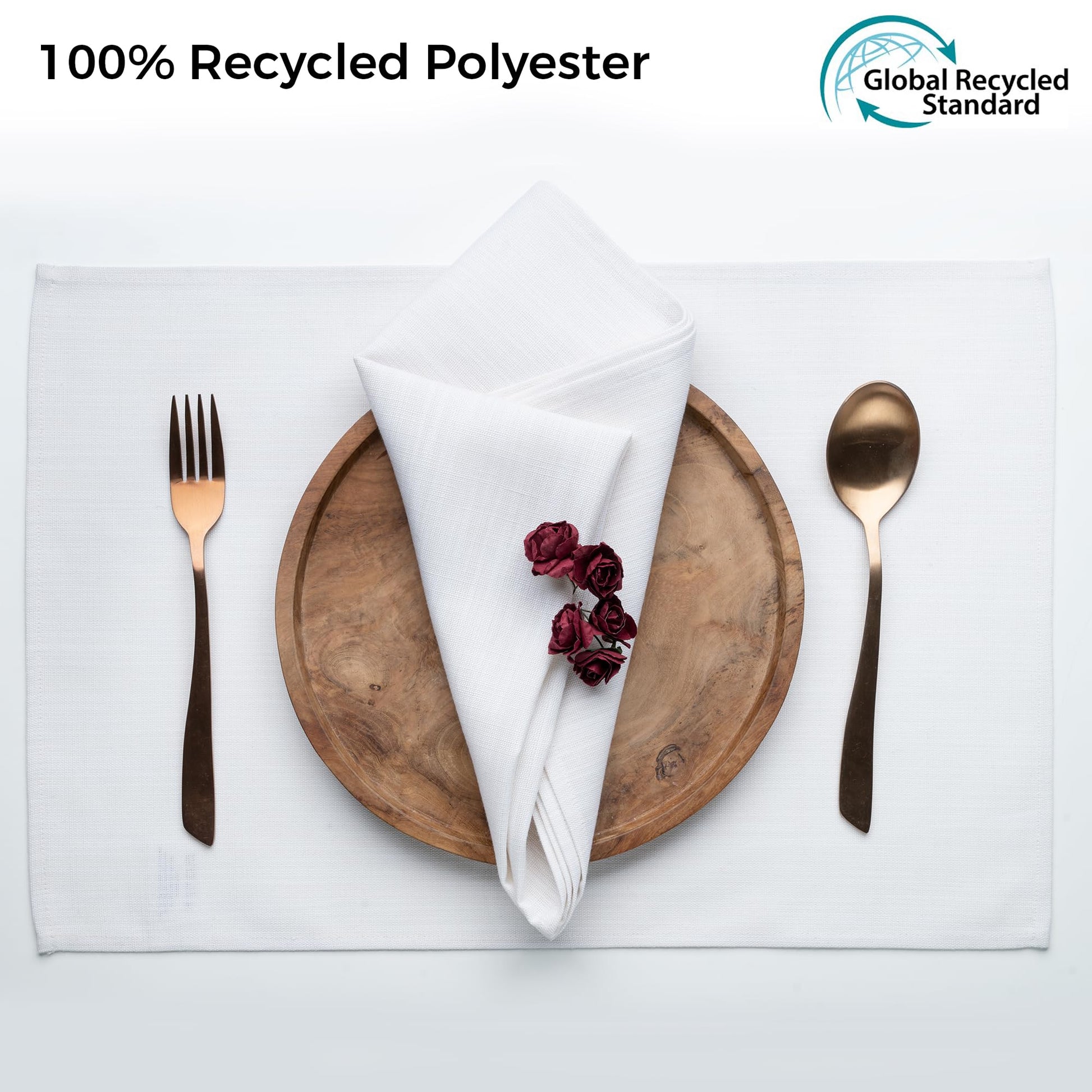 • EARTH FRIENDLY FABRIC - Our premium faux linen is 100% recycled and meets Global Recycled Standards, guaranteeing an ethical and earth-friendly supply chain. Each dinner napkin set contains 25 to 35 recycled plastic bottles preventing them from ending up in our oceans or landfills.
