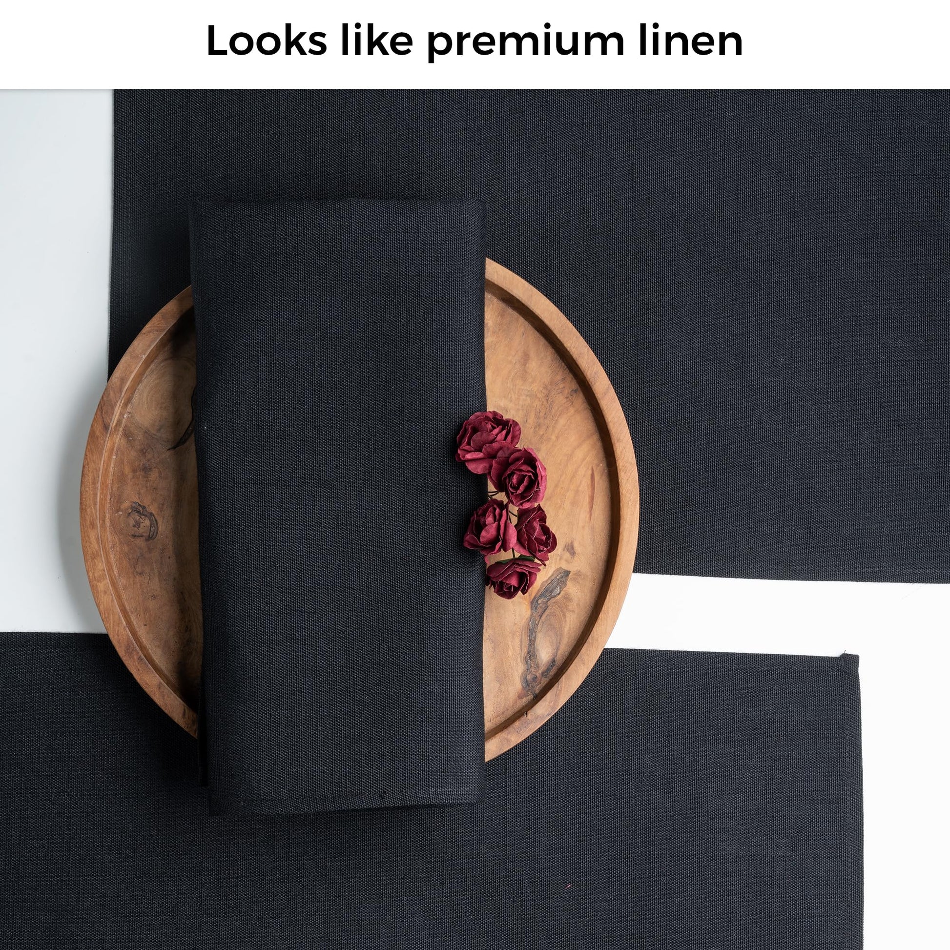 D'Moksha Homes Cloth Napkins 20 x 20 Inch Set of 4 - Premium Faux Linen Black Napkins - Wrinkle Resistant, Machine Washable Cloth - 100% Recycled Fabric Soft & Durable for Fall, Halloween
