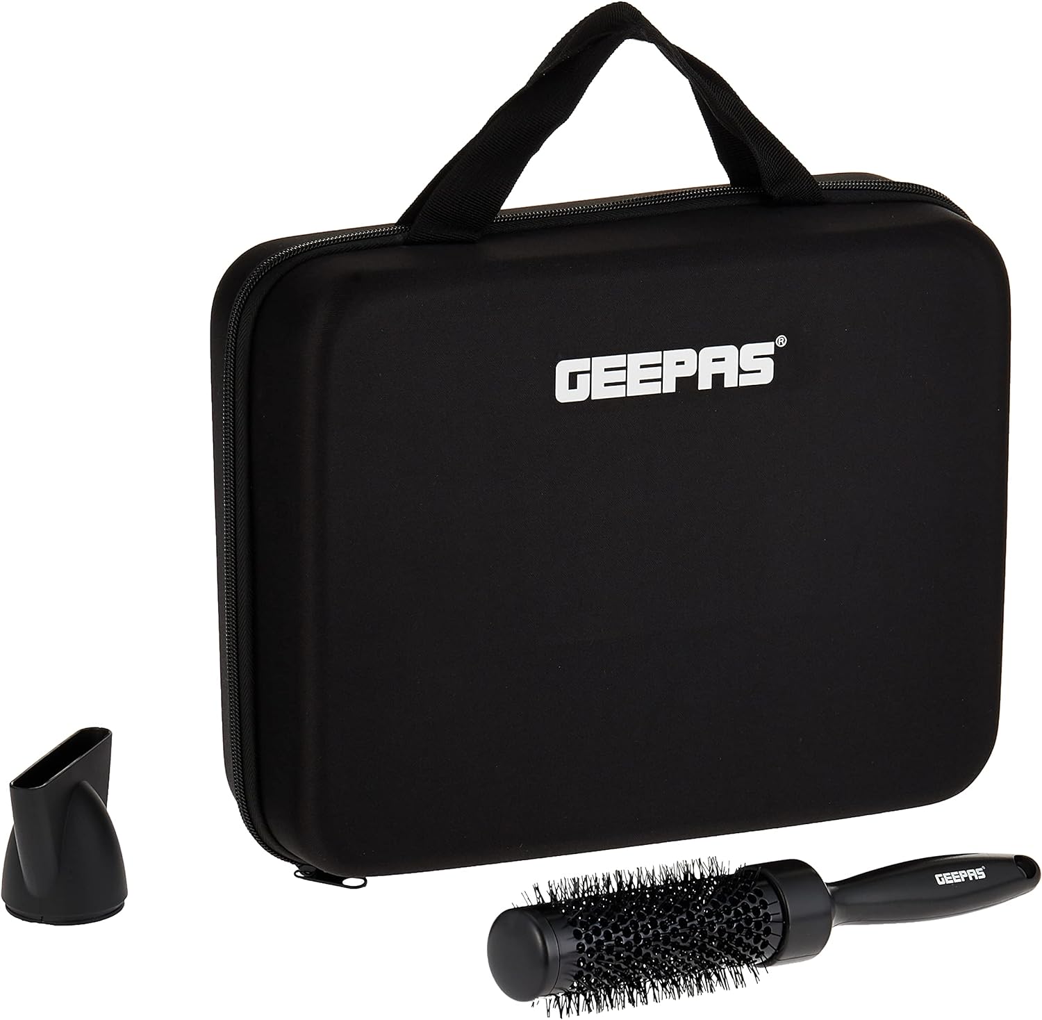 Geepas professional hairdryer delivers strong wind for fast drying even thick hair in 5 minutes without damage, which is safer and also low noise, A good choice for family, travel, salon. The 360 degree swivel cord and oval design allow flexibility for you to move freely without the cord or bristles becoming tangled. Massaging ball tips helps dry, smooth and style all hair types in half the time. Small size and lightweight, easy to carry with its EVA bag, very suitable for home and travel use. It is a great gift for women who like to see their best. This professional straightener and dryer will give you that just back from the salon beauty look. Get a variety of hairstyles, blow dryer, hair straightener, hair curling iron, a set of it. Provides you with a portable, detachable hair dryer brush that is essential for travel and easy to load into your commuter bag. Handy and lightweight ergonomic designed handle as well as 6 ft tangle-free swivel cord, makes this easy to use. The hot air brush styler and dryer power cord with a 360 tangle-free swivel, it's long enough for easy styling and movement. The hair straightener can be fulfilled the desire of all kinds of hair with different temperatures by controlled, rotating adjustable temperature and salon high heat 15-200. The adjustable temperature fits all hair types: fragile hair, damaged hair and healthy hair. It will give your hair a classy look. GHF86054- (Hair dryer): DC Motor; 2 speed and 3 heat settings; Cool shot function; Hang up hook; with two rocker switch; with removable filter; AC 220-240 V 50-60 Hz 2000W. GHF86054- 2 (2 in 1 hair straightener and curler): DC Motor; 32 by 107 mm ceramic coating plate; ON/OFF switch; 360 swivel cord; with lockable handle; AC 110-240 V 50-60 Hz 55 W.