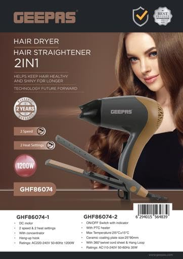Geepas Hair Dryer&StraightenerCombo GHF86074|
