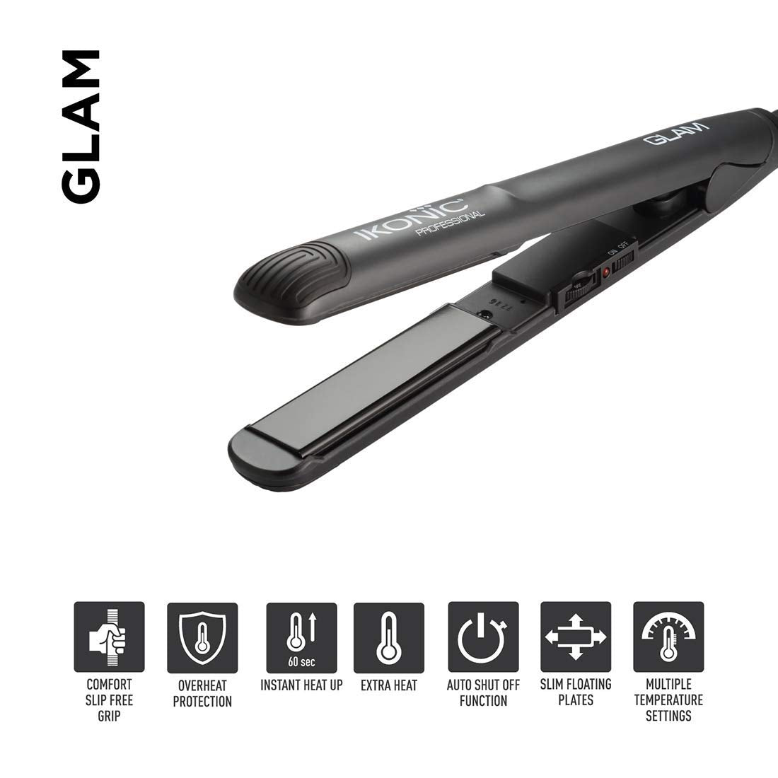 Ikonic Glam Hair Straightener For Women With Professional Cutting-Edge Floating Tourmaline Ceramic Plates Ideal For Straighteneing, Curls, Waves Auto Controlled Heat Setting Super Stylish Lightweight Travel Friendly Quick Heat Up & Easy To Use