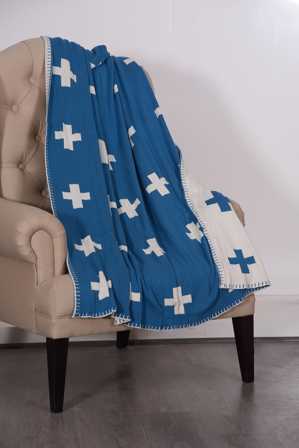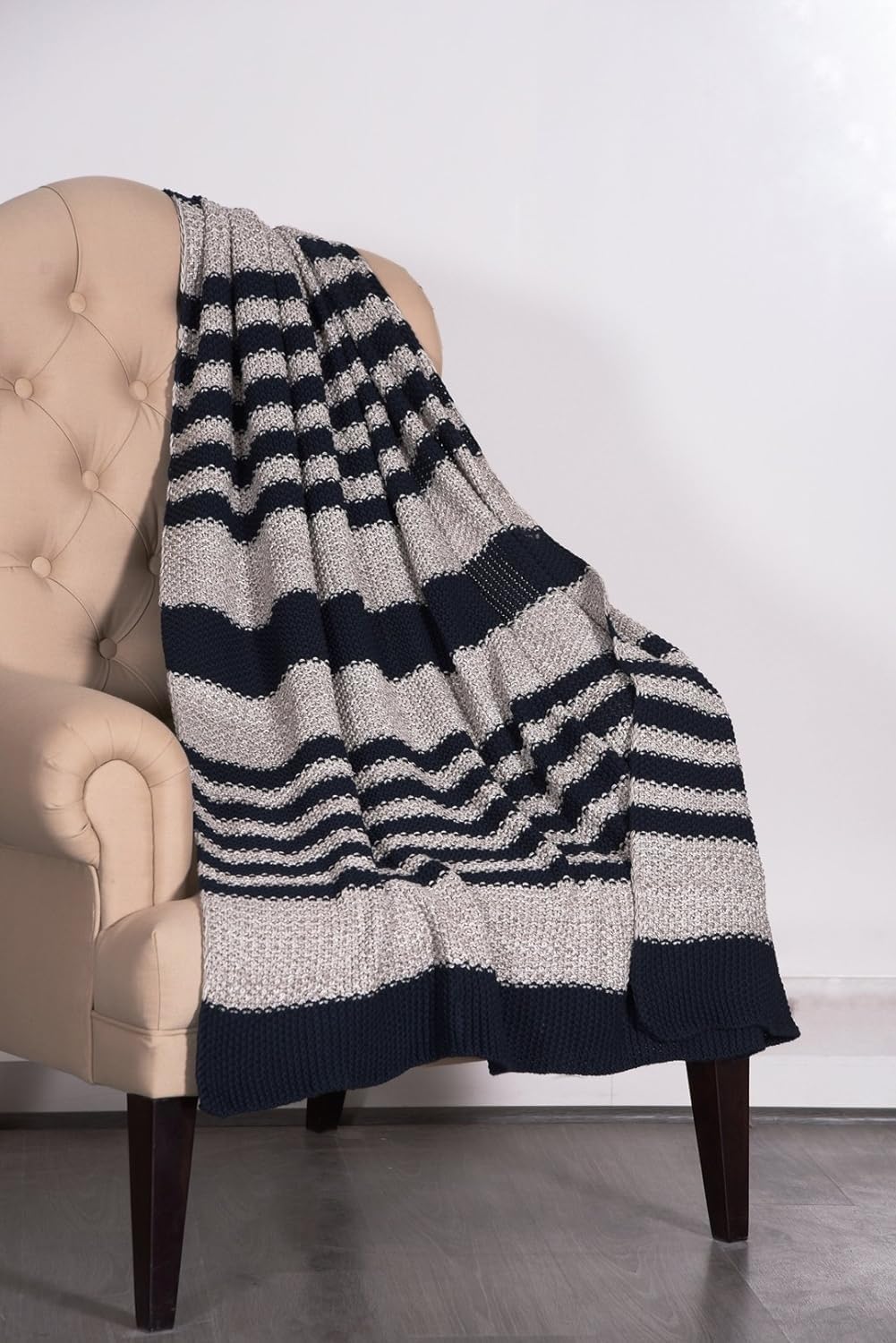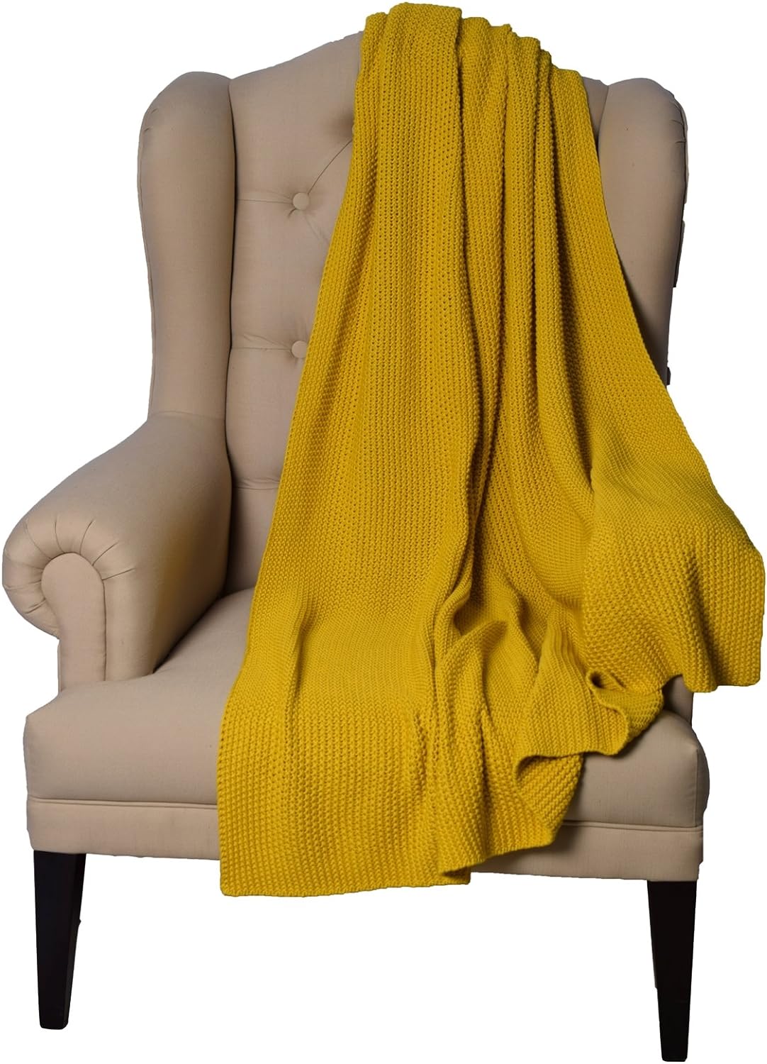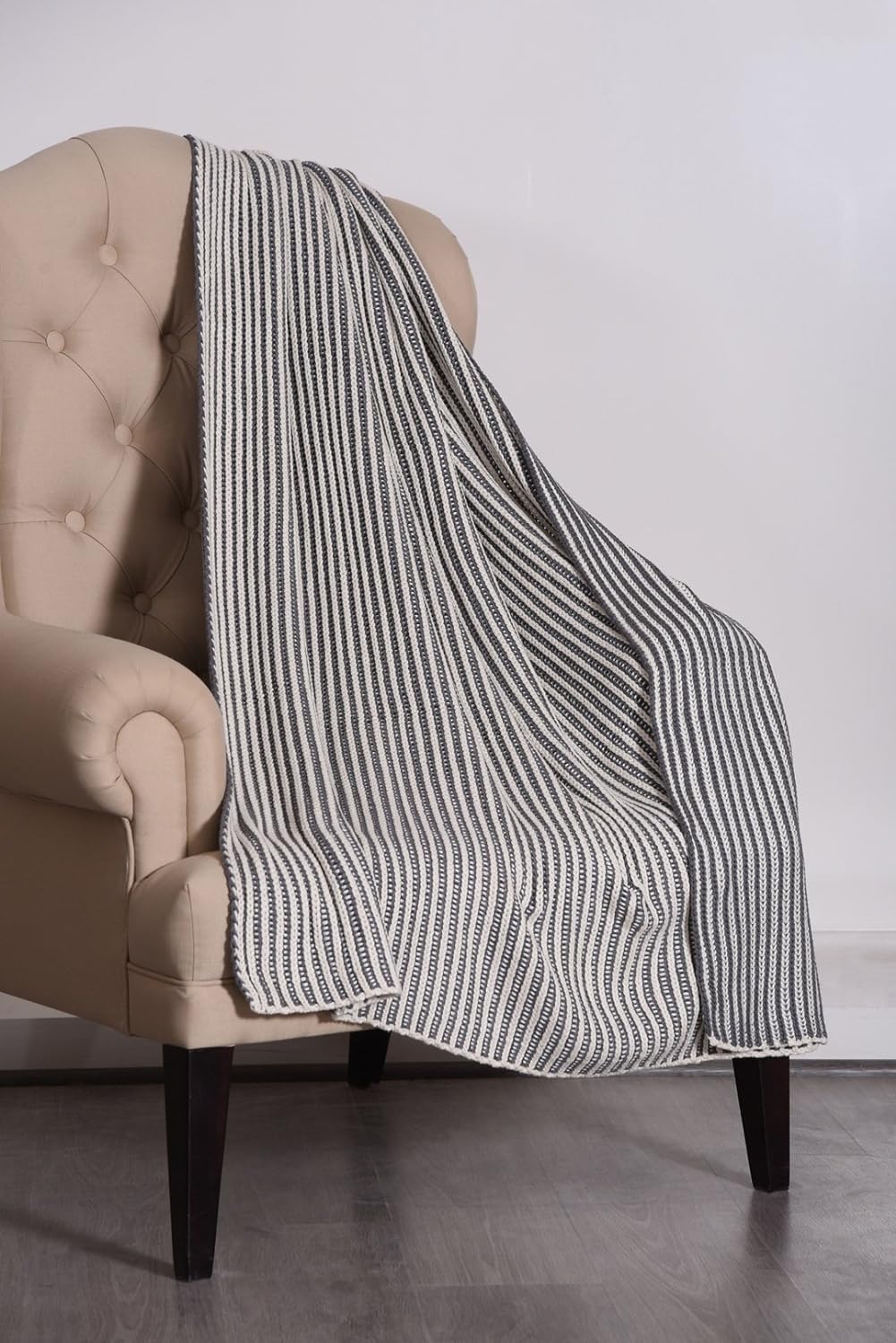 Lavish Touch 100% Cotton Knitted Throw, Blanket for All Season Indoor Outdoor