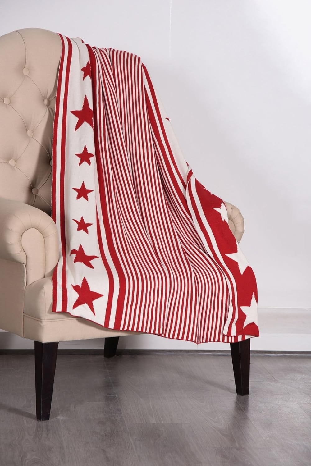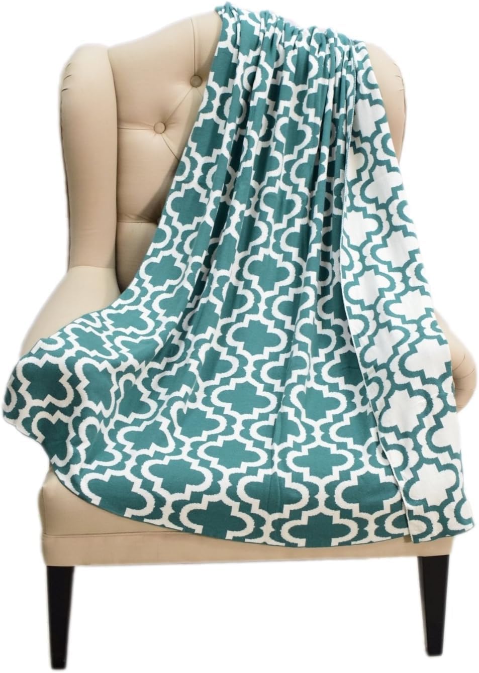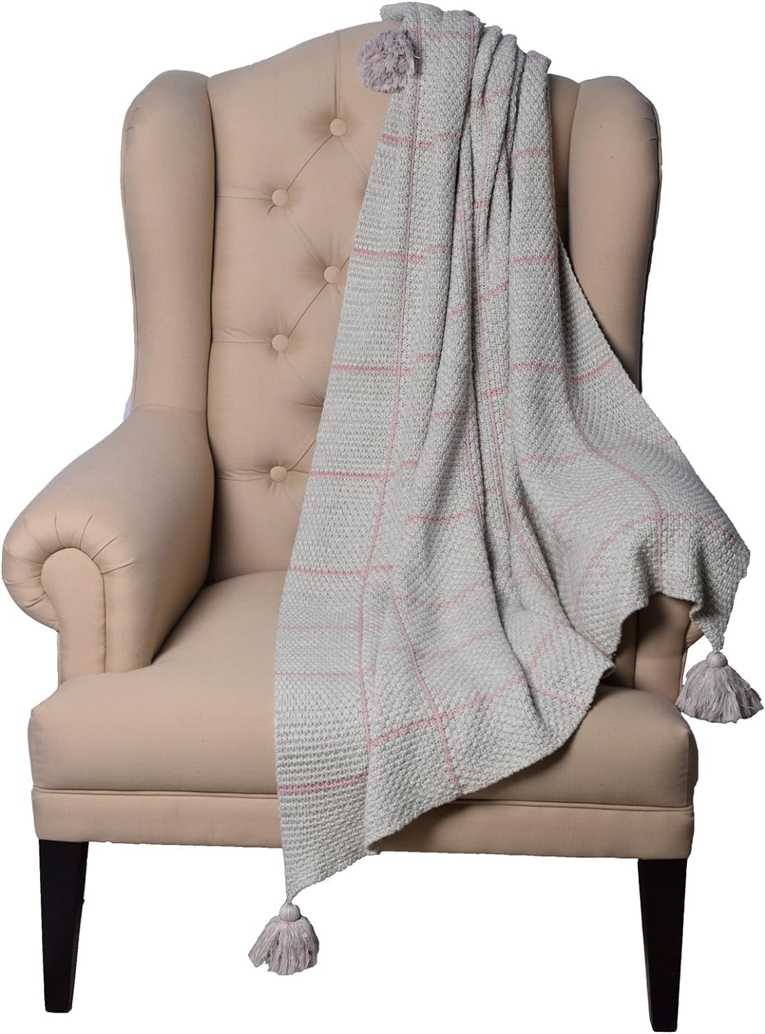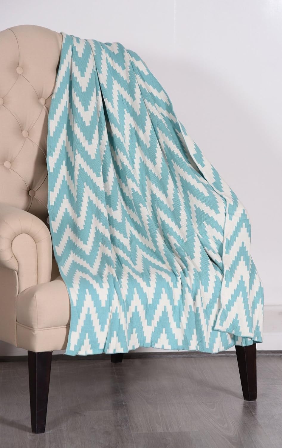 Lavish Touch 100% Cotton Knitted Throw, Blanket for All Season Indoor Outdoor
