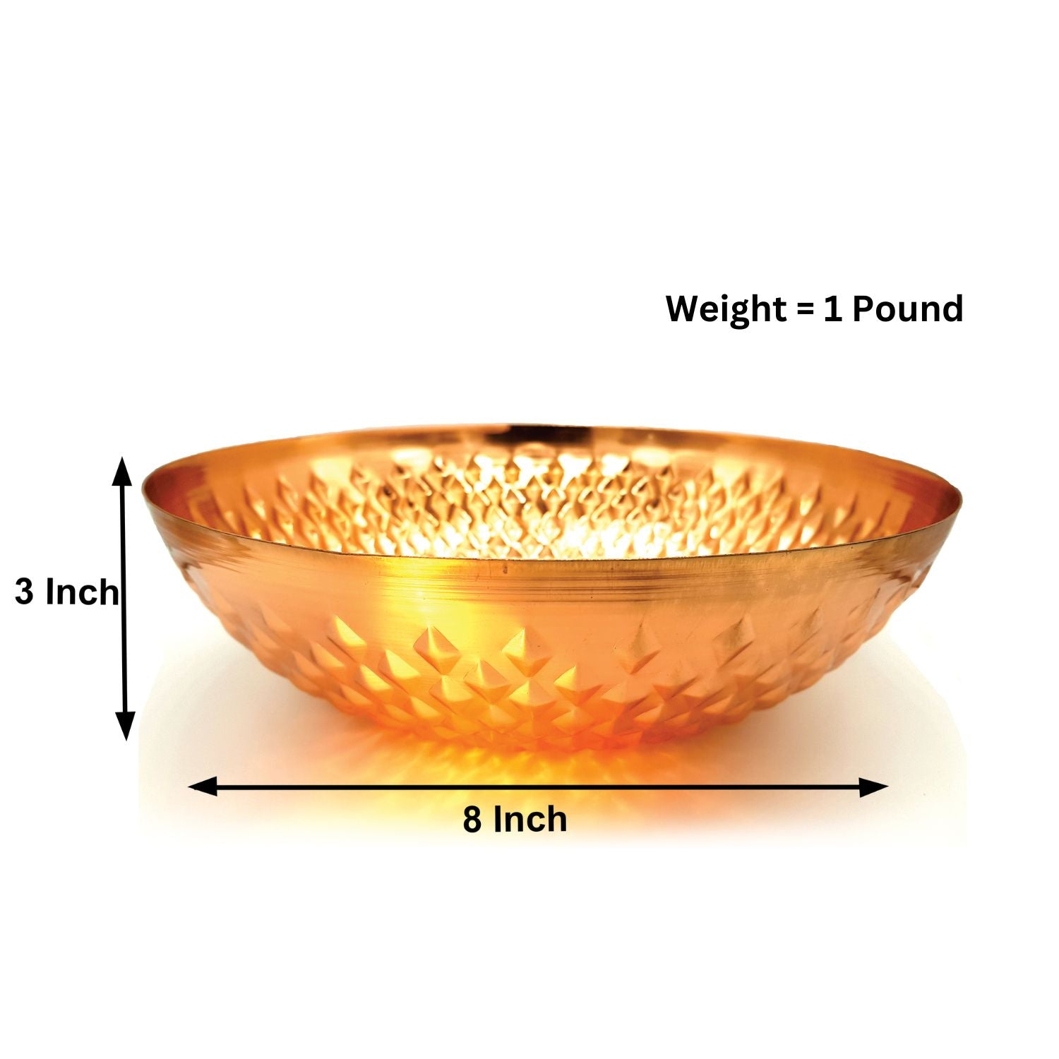 Tencher has been finished with Copper plating on the top. Copper is a good conductor of energy and many people believe that it channels the energy of the Universe through itself. So, let the Universal energy flow through your beautiful home. Perfect for use as a showpiece or fruit/flower bowl!