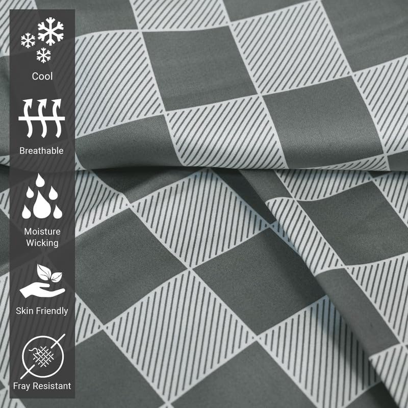 Pizuna Cotton Grey Smart Plaid Duvet Cover Full Size, 400 Thread Count Long Staple Cotton Quilt Cover Full, Sateen Full Duvet Covers with Button Closure (100% Cotton Full Size Bedding Set)