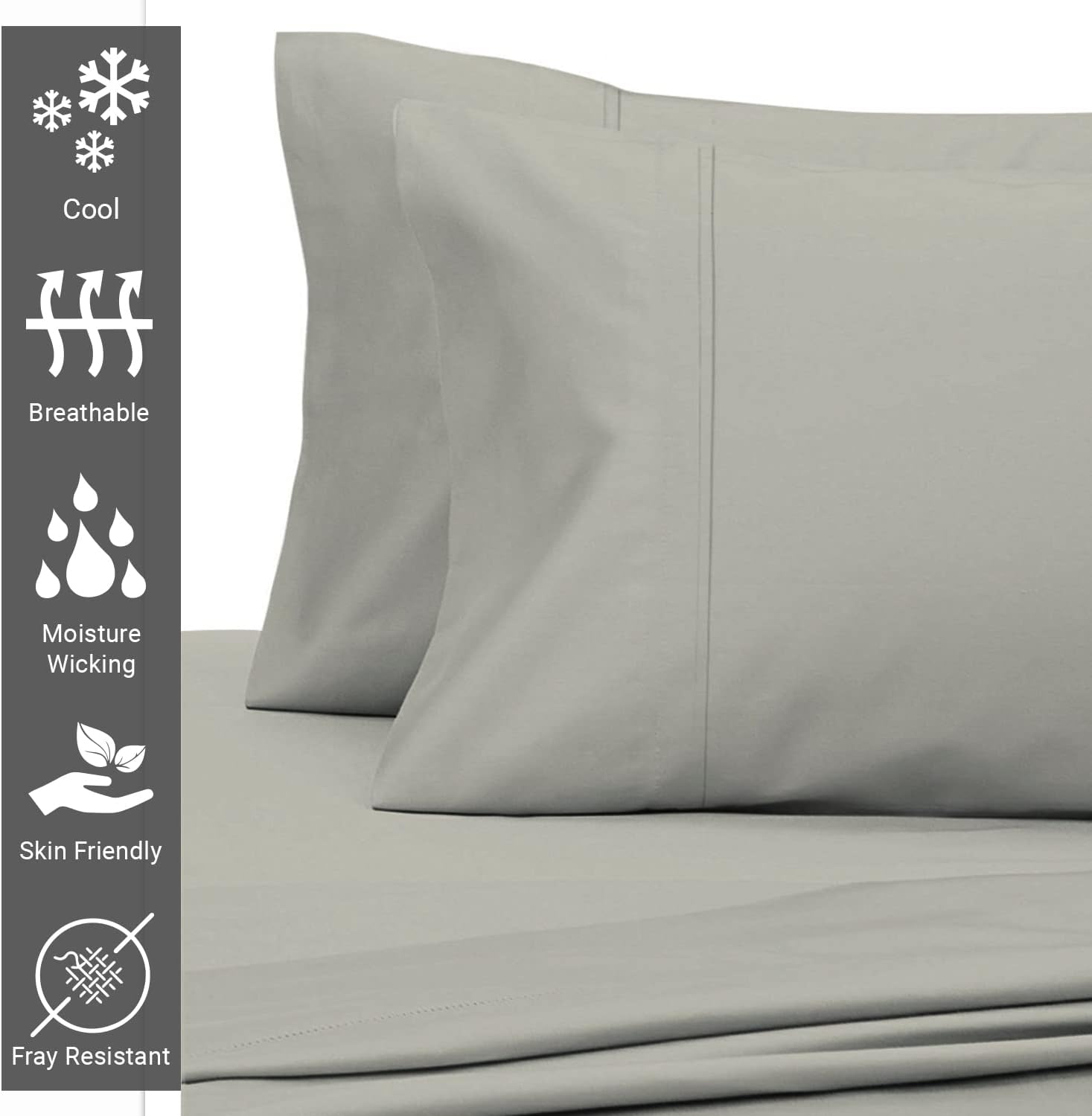 Pizuna Cotton King Size Pillow Case Silver, 400 Thread Count 100% Long Staple Combed Cotton Sateen Pillowcase, Cooling Pillow Covers with Stylish 4 Inch Hem (Silver King Pillowcase Set of 2)