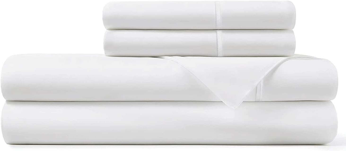 Cotton Sheets Queen Size, 100% Long Staple Cotton Percale Sheets Queen with 15inch Deep Pocket (Combed White)