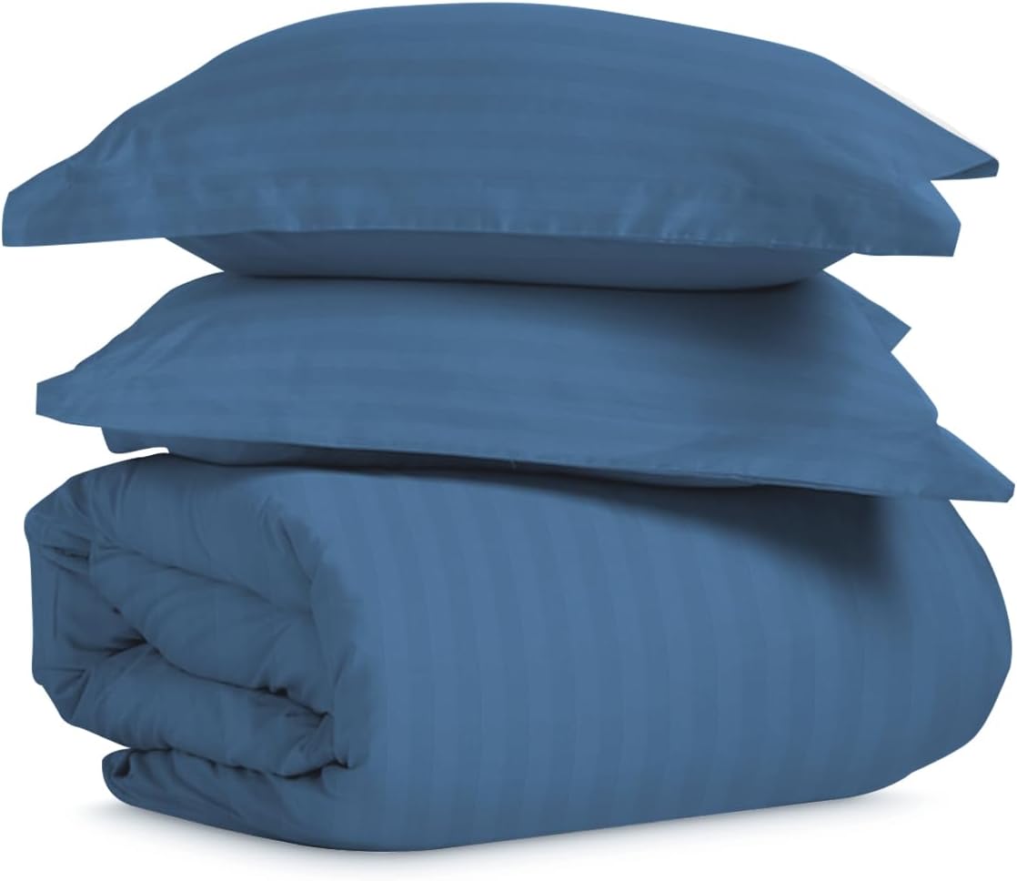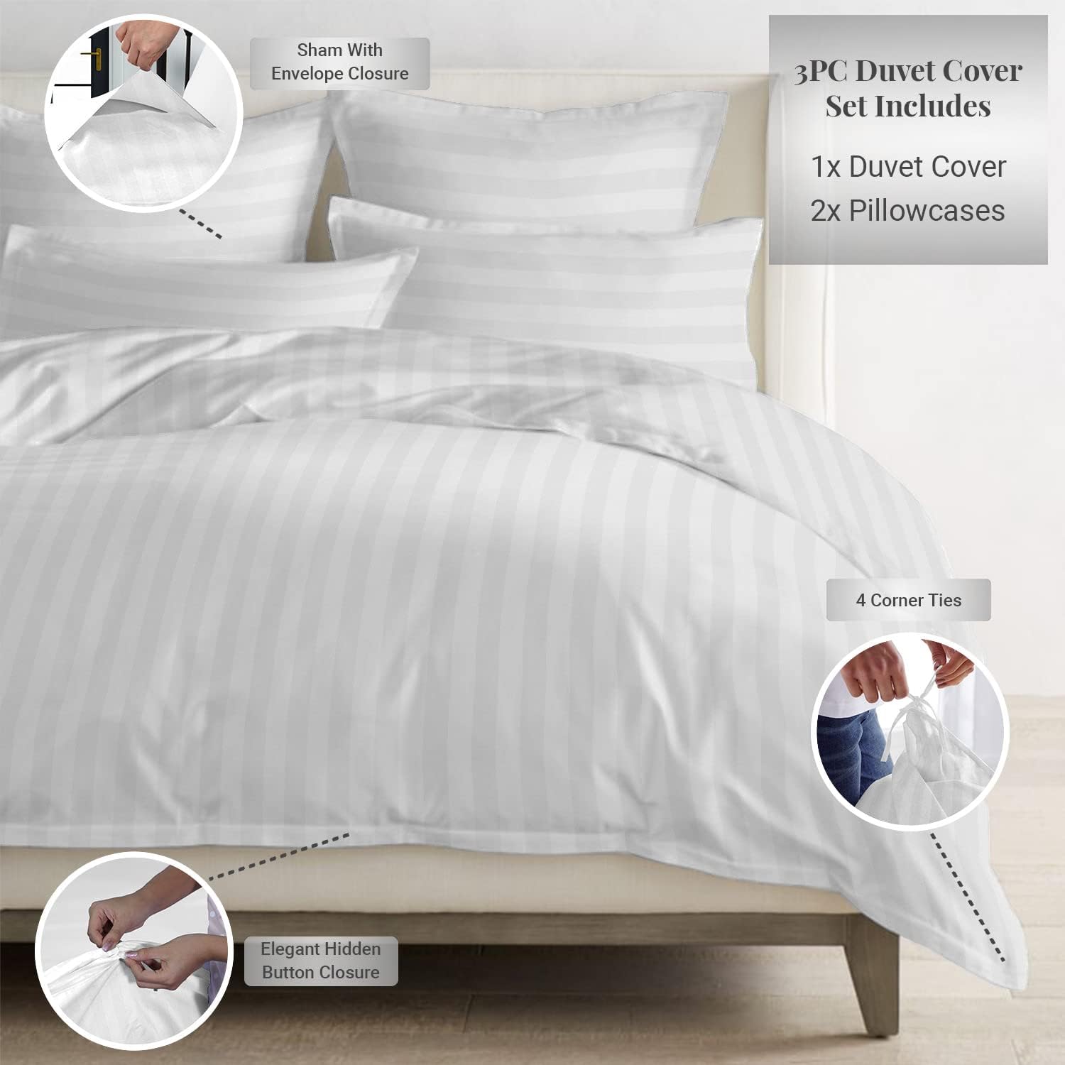 - LIGHTWEIGHT & COMFORTABLE: Enjoy a goodnight’s sleep with the cool and breathable Pizuna 300 Thread Count Full Size Duvet Cover Set in checks. It features a checkered design that effortlessly grabs attention and elevates the look of your sleeping space. A subtle sheen and damask pattern mix and match perfectly with most of the interiors for a stylish appearance. The 100% Long Staple Cotton, Sateen Weave finish and Fine Yarn Technique result in high-quality cotton bedding.