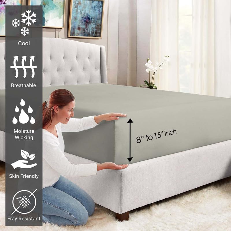 Pizuna Cotton Twin Fitted Sheet Silver, 400 Thread Count 100% Long Staple Combed Cotton Sateen Weave 15 inch Deep Pocket Twin Sheets (Silver Twin Size Fitted Sheet -1PC)