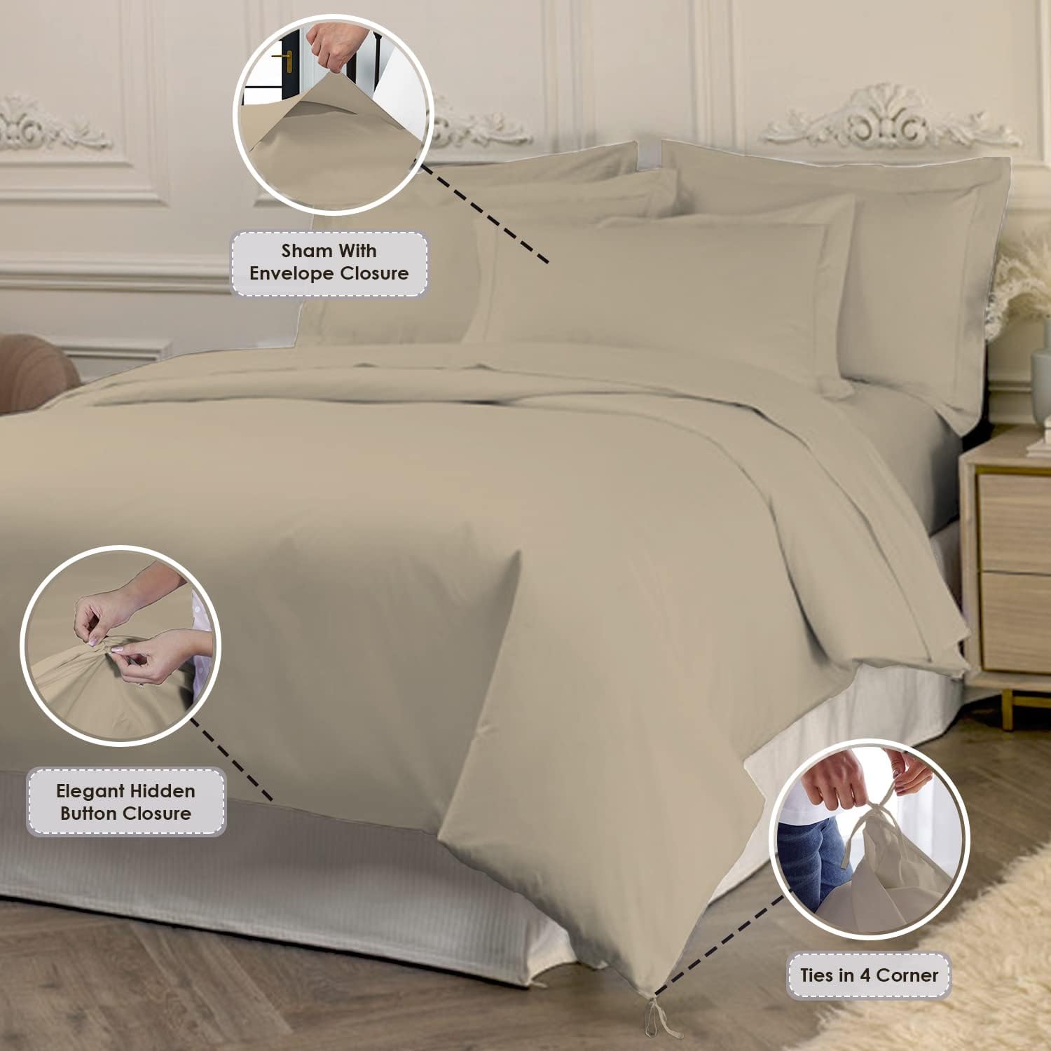 - Smart Fit Ties: The hidden-button closure and 4 corner ties give a secure & smart fit, preventing the comforter or duvet to bunch up inside. The set includes 1 duvet cover (90” x 90”) and 2 pillow shams with elegant flanges and convenient envelope closure (20” x 26”) for a stylish look.