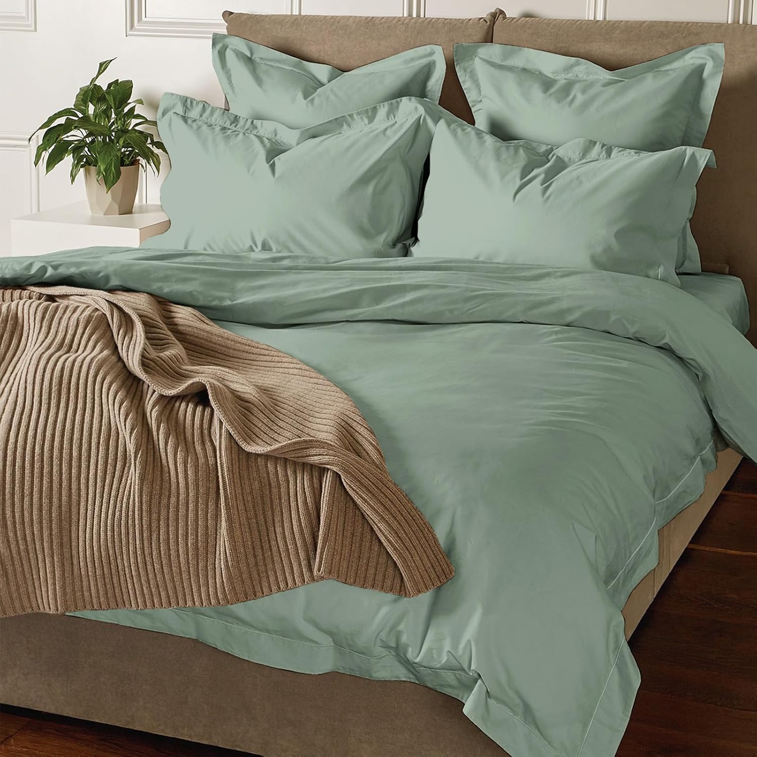 Pizuna Pure 100% Cotton Queen Duvet Cover Set, 800 Thread Count Long Staple Cotton Thick Sateen Weave with Button Closure (Combed Baby Blue Cotton Duvet Cover Queen)