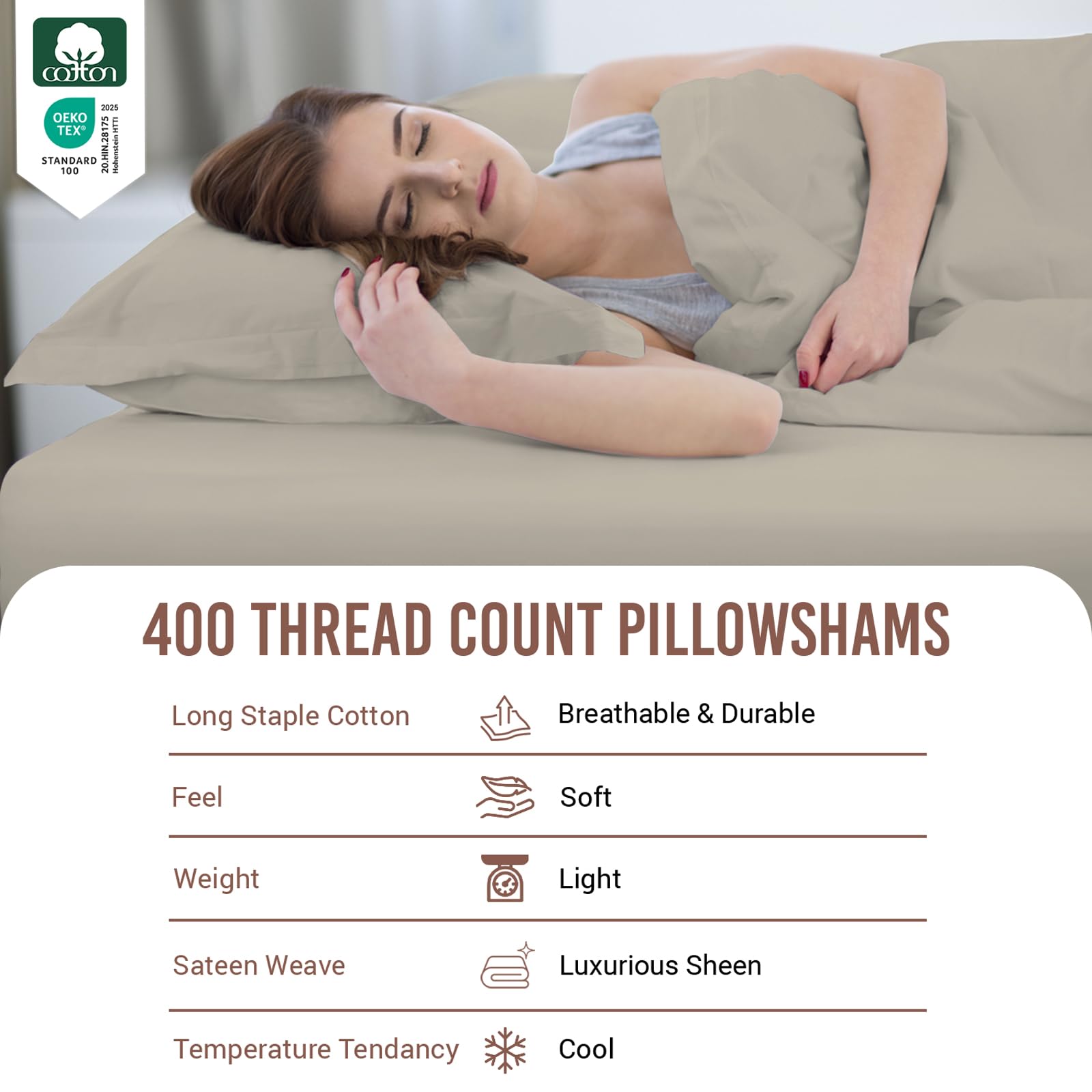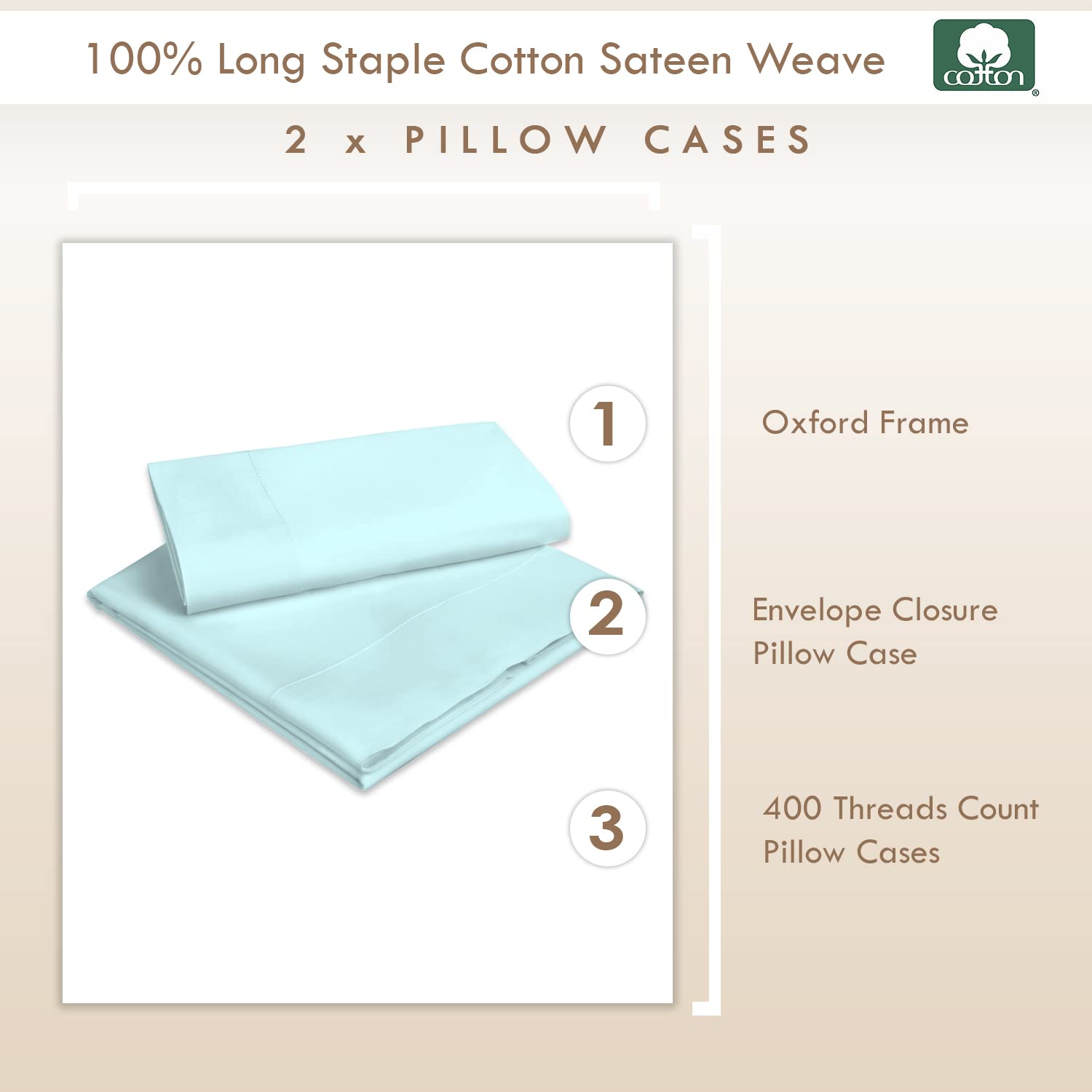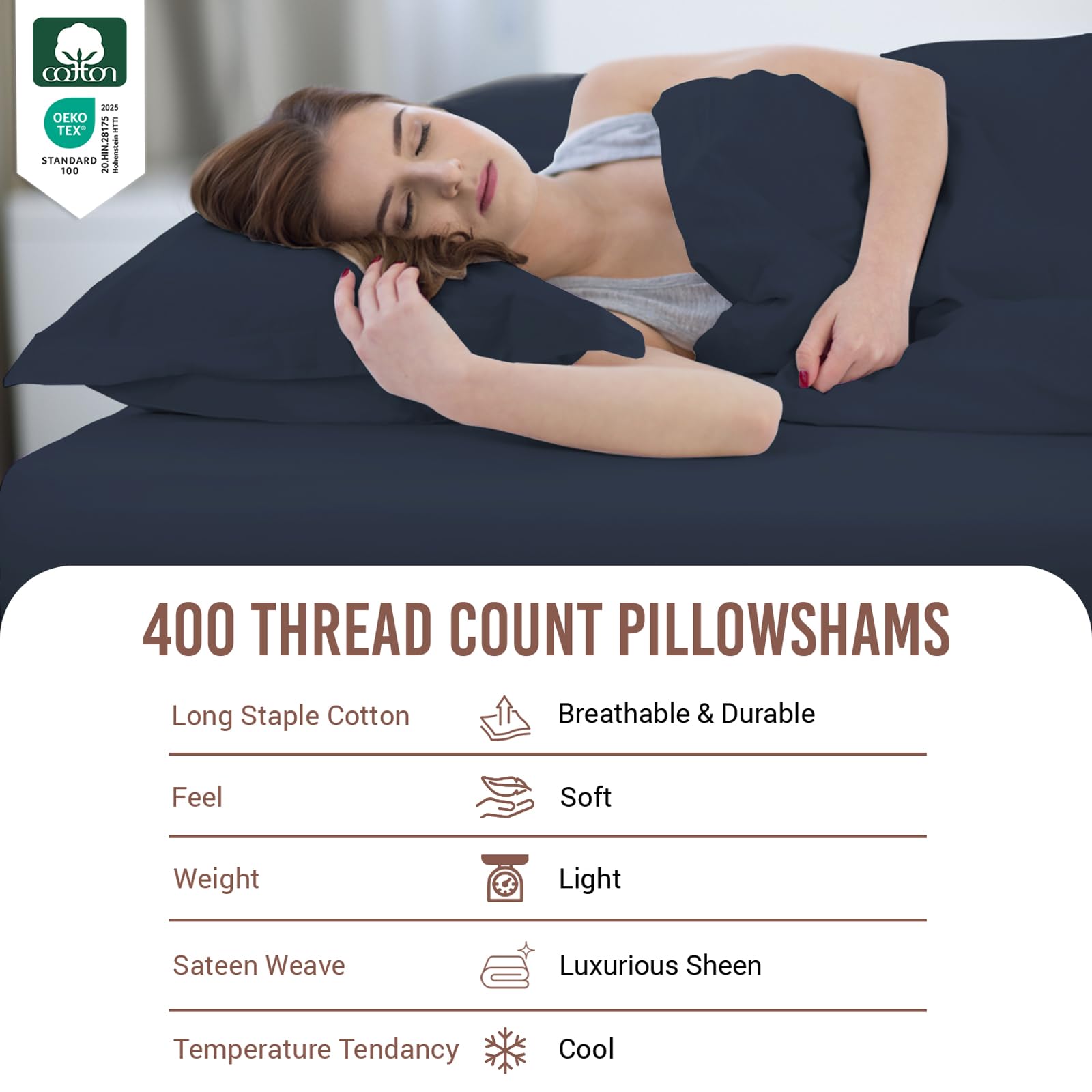 - Cool, Breathable & Smooth: Crafted from 100% Long-Staple Combed Cotton Sateen Weave, this 400 thread count king size pillow sham with its lightweight texture is made with specially compacted yarn. Minimal artificial processing make this pillow sham gentle on all skin types, prevents night sweats, absorbs moisture and regulates body temperature to sleep cool while maintaining the elegant hotel look.