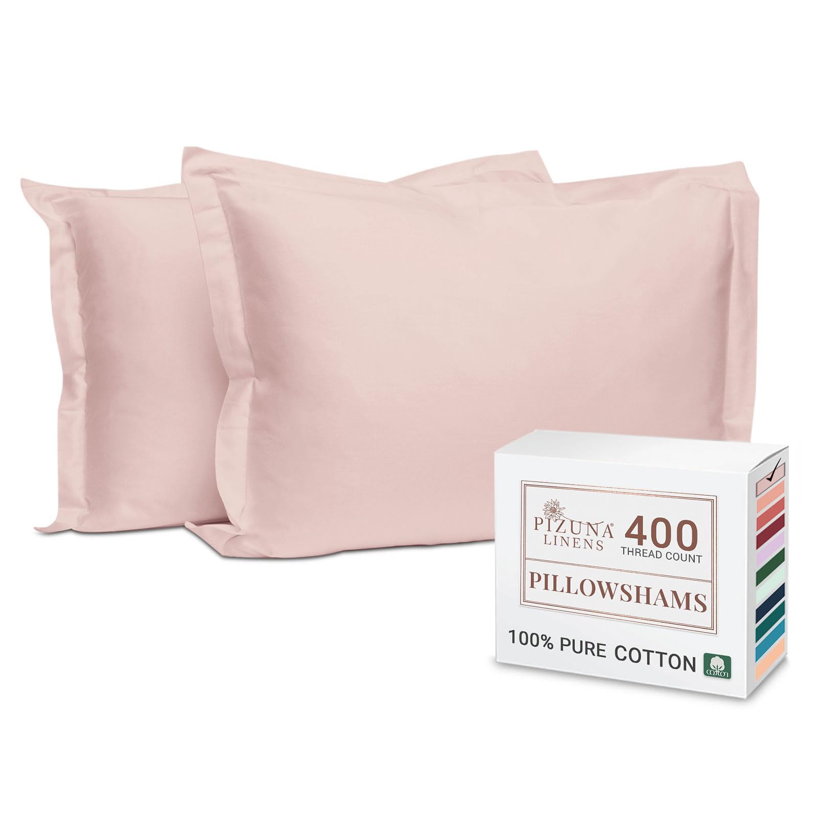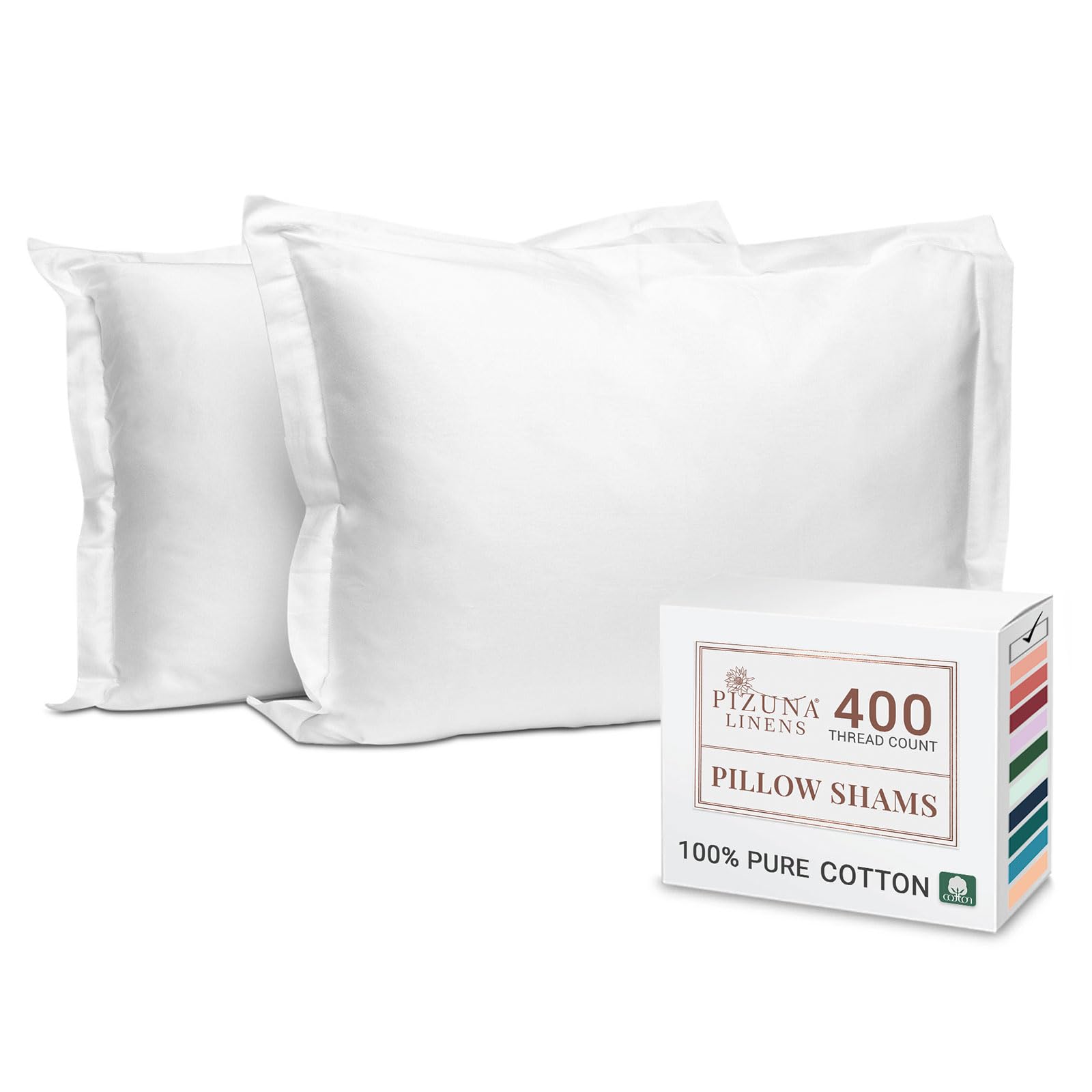 - 100% Pure & Natural Mercerised Combed Cotton: With Pizuna's fine yarn technique, these authentic 400 Thread Count combed cotton pillow shams features a single dent (4 up-1 down) sateen weave. Usage of mercerised combed cotton make these king size pillow shams smooth & sturdy. Pure & natural cotton bedding wrinkles, but it is distinctively cooler & breathable. Further, it softens and the wrinkling reduces with every wash.