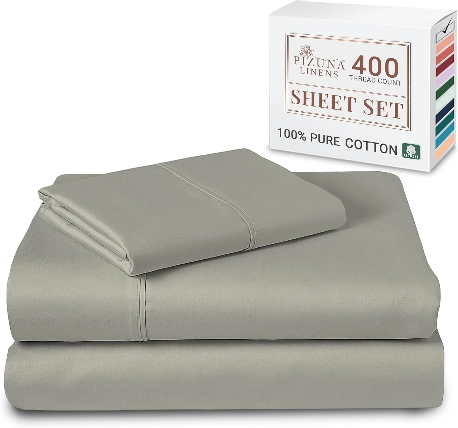 - 100% Pure & Natural Mercerized Combed Cotton: Made from Pizuna's fine yarn technique, this authentic 400 thread count bedsheet twin size features a single dent (4 up-1 down) sateen weave. Mercerized combed cotton make this luxury bed sheet smooth & long-lasting. Pure and natural cotton bedding wrinkles initially, but with each wash it softens and the wrinkling reduces.