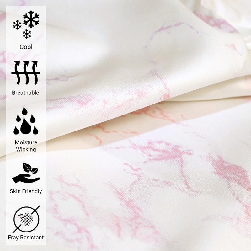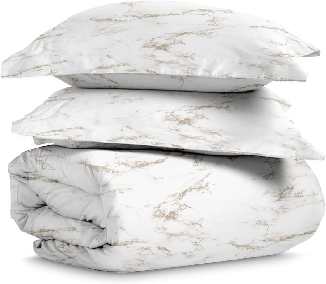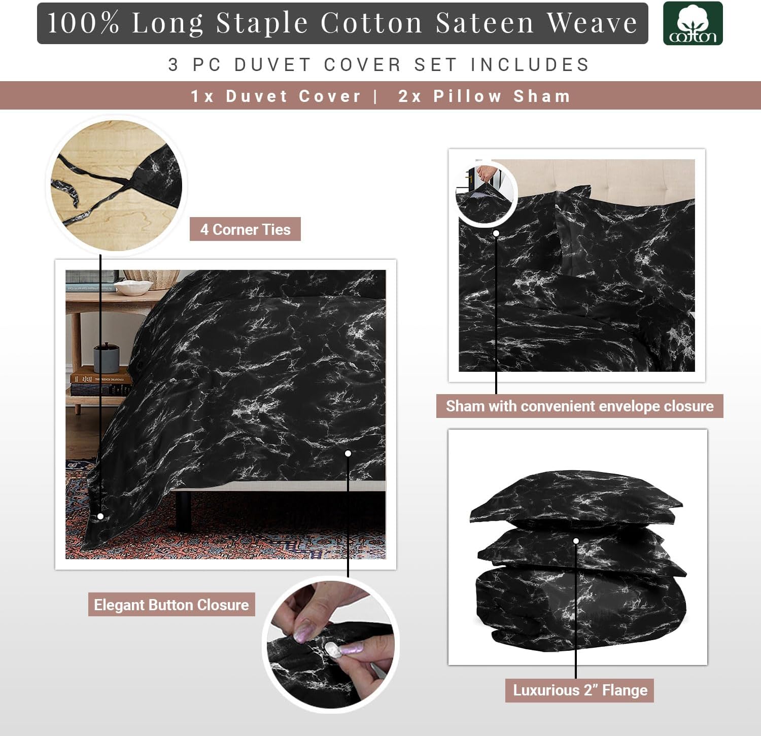 - Cool, Breathable & Smooth: Crafted from 100% Long-Staple Combed Cotton Sateen Weave, this duvet cover full set is made with specially compacted yarn. Minimal artificial processing makes this full-size duvet cover gentle on all skin types, prevents night sweats, absorbs moisture and regulates body temperature to sleep cool while maintaining a luxurious look.