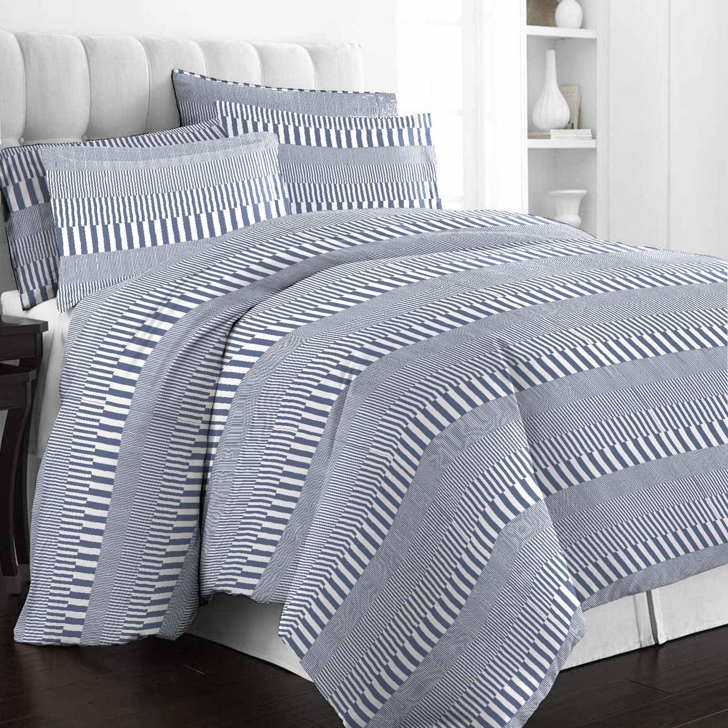 Pizuna Pure 100% Cotton Full Duvet Cover Set, Luxurious 400 Thread Count Long Staple Cotton Sateen Weave with Button Closure (Combed Grey Cascade Stripe Cotton Duvet Cover Full)