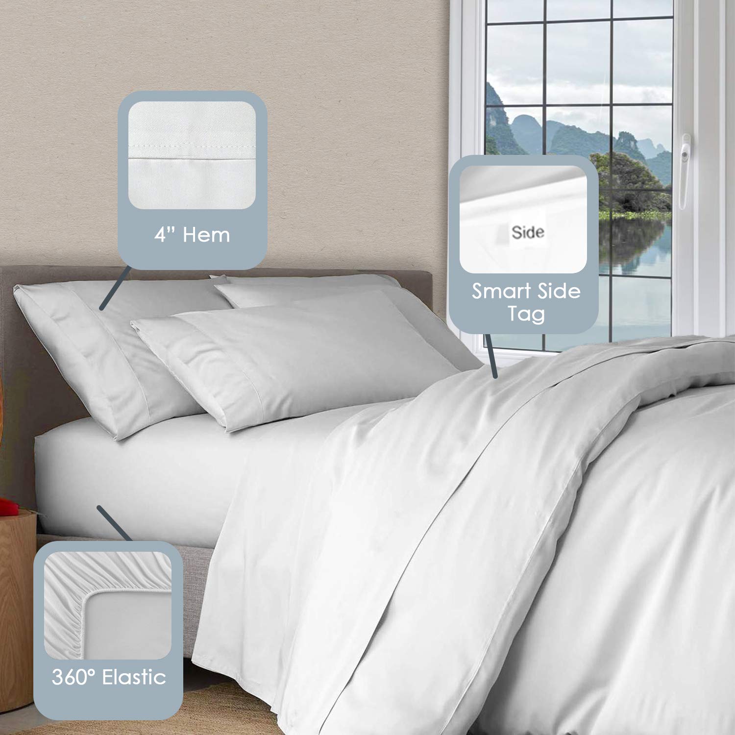 - Patented Stitching for Great Fit: Full Sheet Set includes: 1 Full Size Flat Sheet (81” x 100”) - Quickly absorbs sweat & protect stains, ensuring comforter or duvet freshness. 1 Fully Elasticized Fitted Sheet with deep pockets (54” x 75” + 15”) - Comes with a unique patented stitching that has thick & high-quality elastic for a firm fit on 8” to 15” thick mattresses. 2 Queen Pillowcases (20” x 30”) - Inbuilt Pizuna-styled 4" piped hem that gives an elegant look and a comfortable sleep.