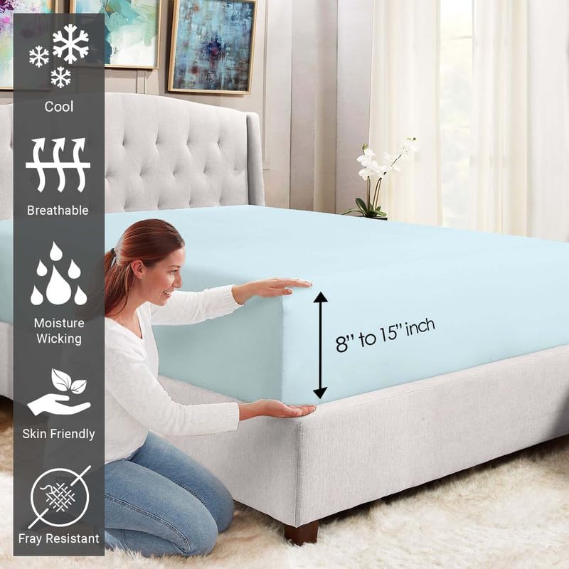 - EASY CARE AND MAINTENANCE: These 400 TC Fitted sheets with Fade Resistant Dyes stay bright after extended use. Machine wash on gentle cycle, tumble dry low. Contact with bleach/bleaching agent contained in certain detergents and skin creams may lead to color loss.